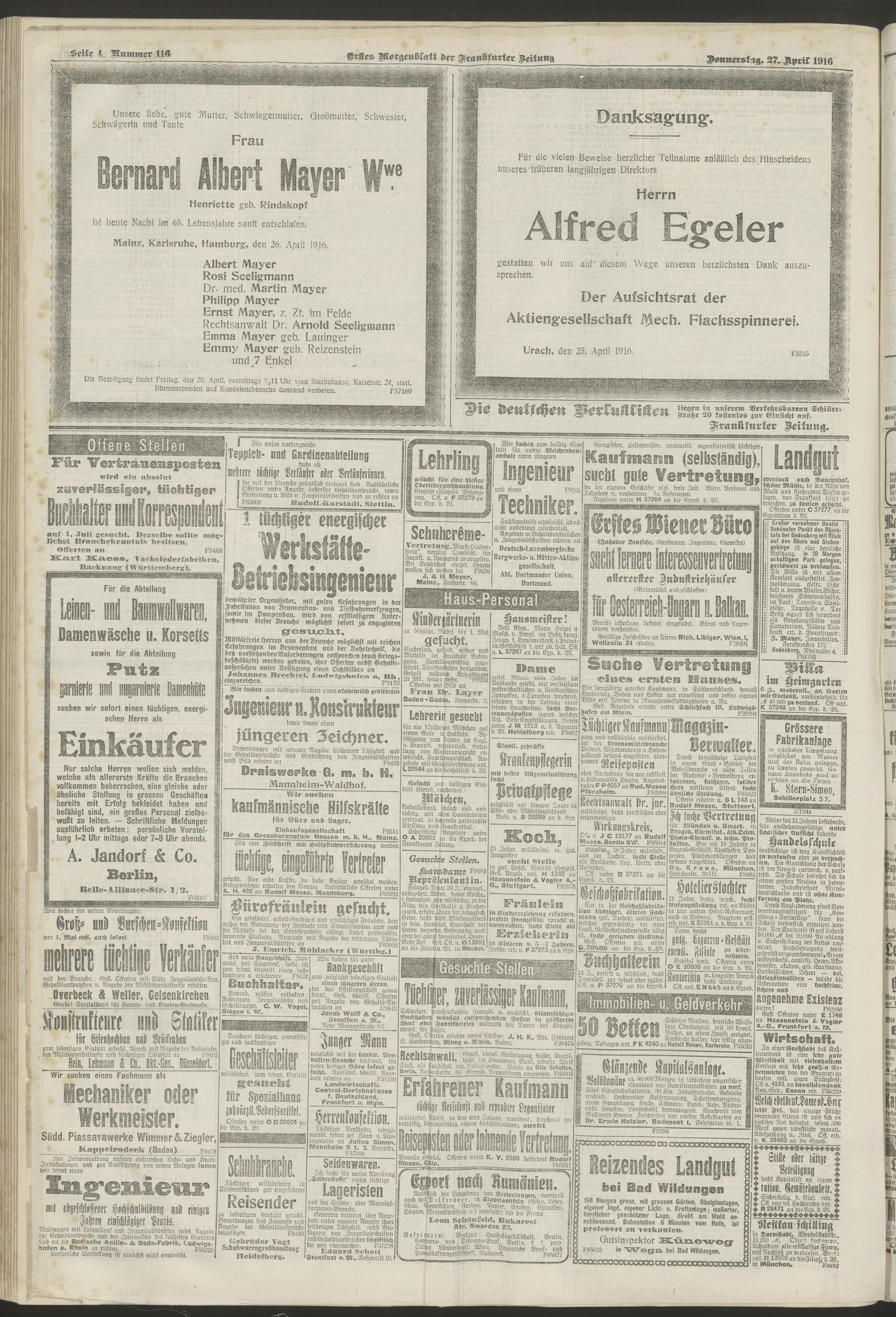 27.04.1916 = Nr. 116. Erstes Morgenblatt