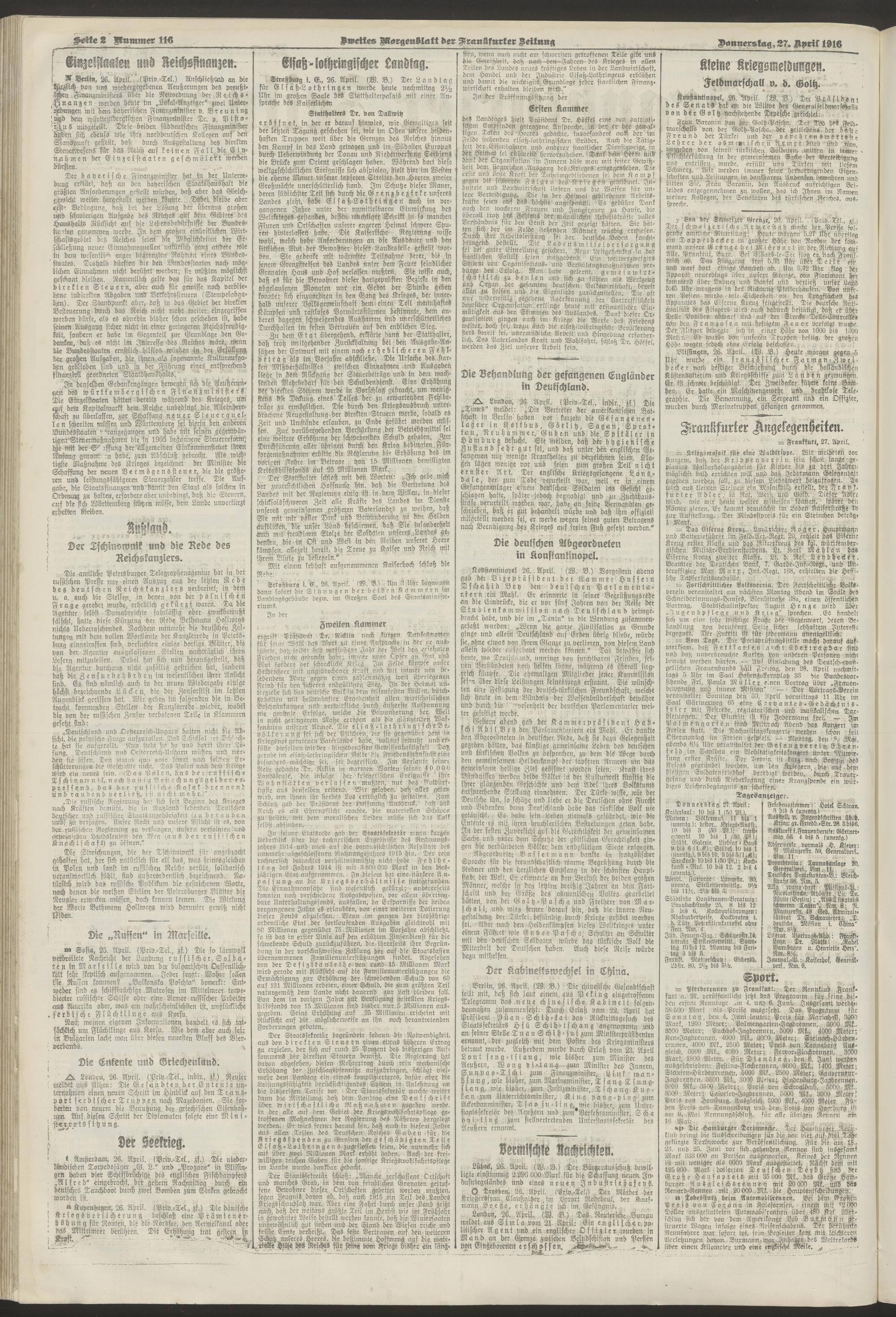 27.04.1916 = Nr. 116. Zweites Morgenblatt