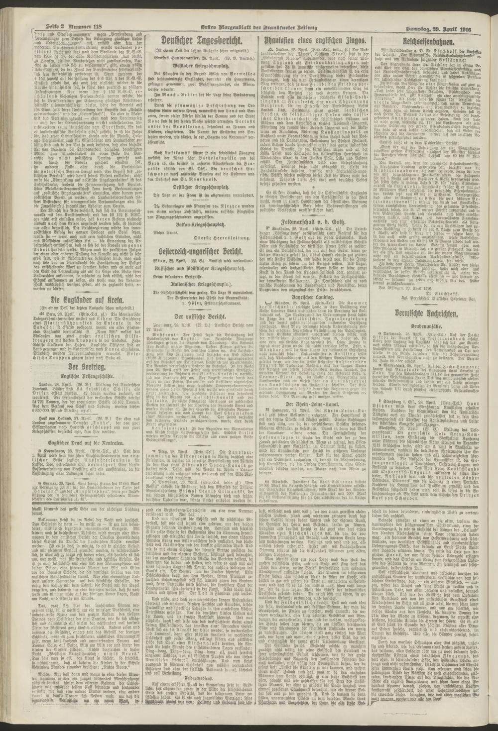 29.04.1916 = Nr. 118. Erstes Morgenblatt