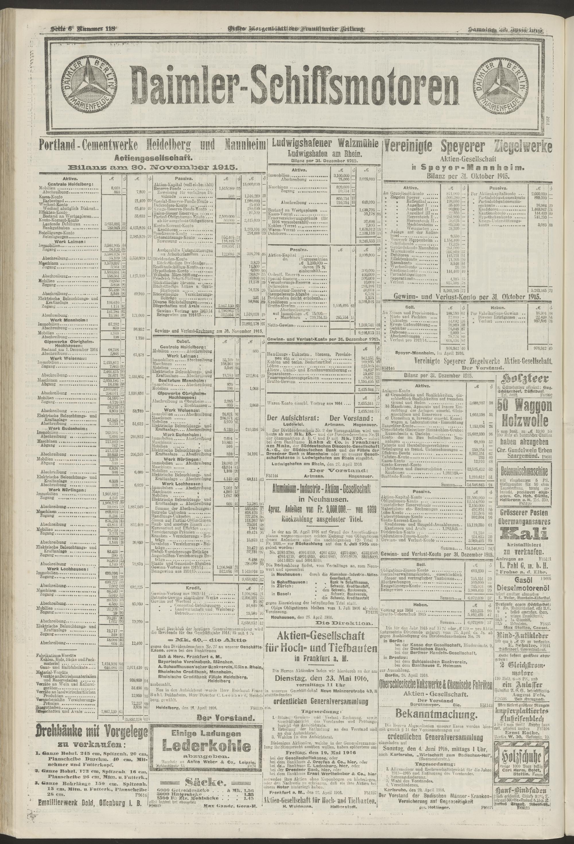 29.04.1916 = Nr. 118. Erstes Morgenblatt