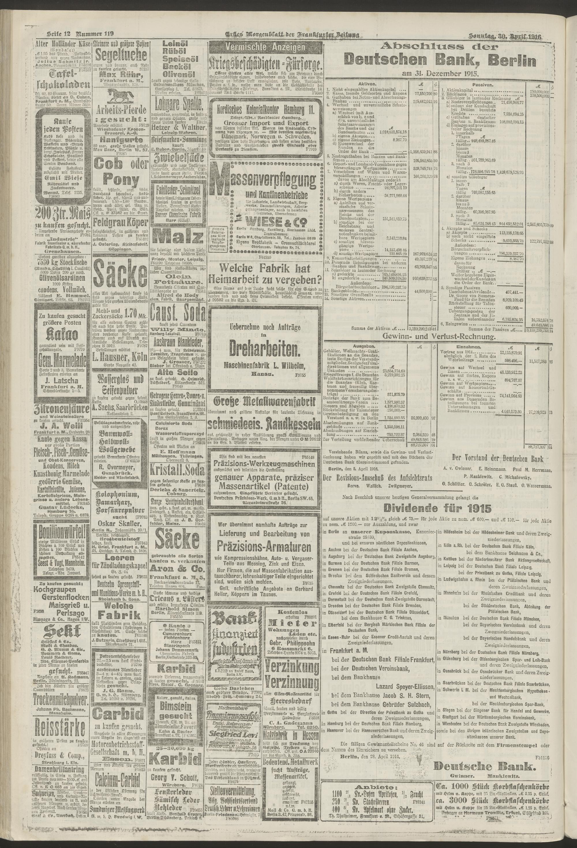 30.04.1916 = Nr. 119. Erstes Morgenblatt