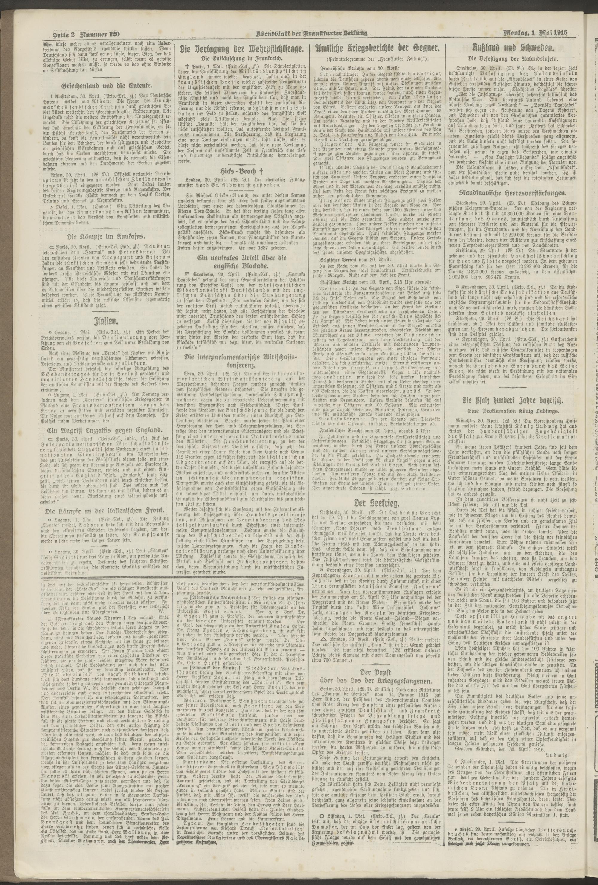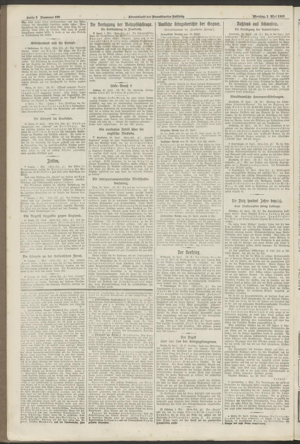 01.05.1916 = Nr. 120. Abendblatt