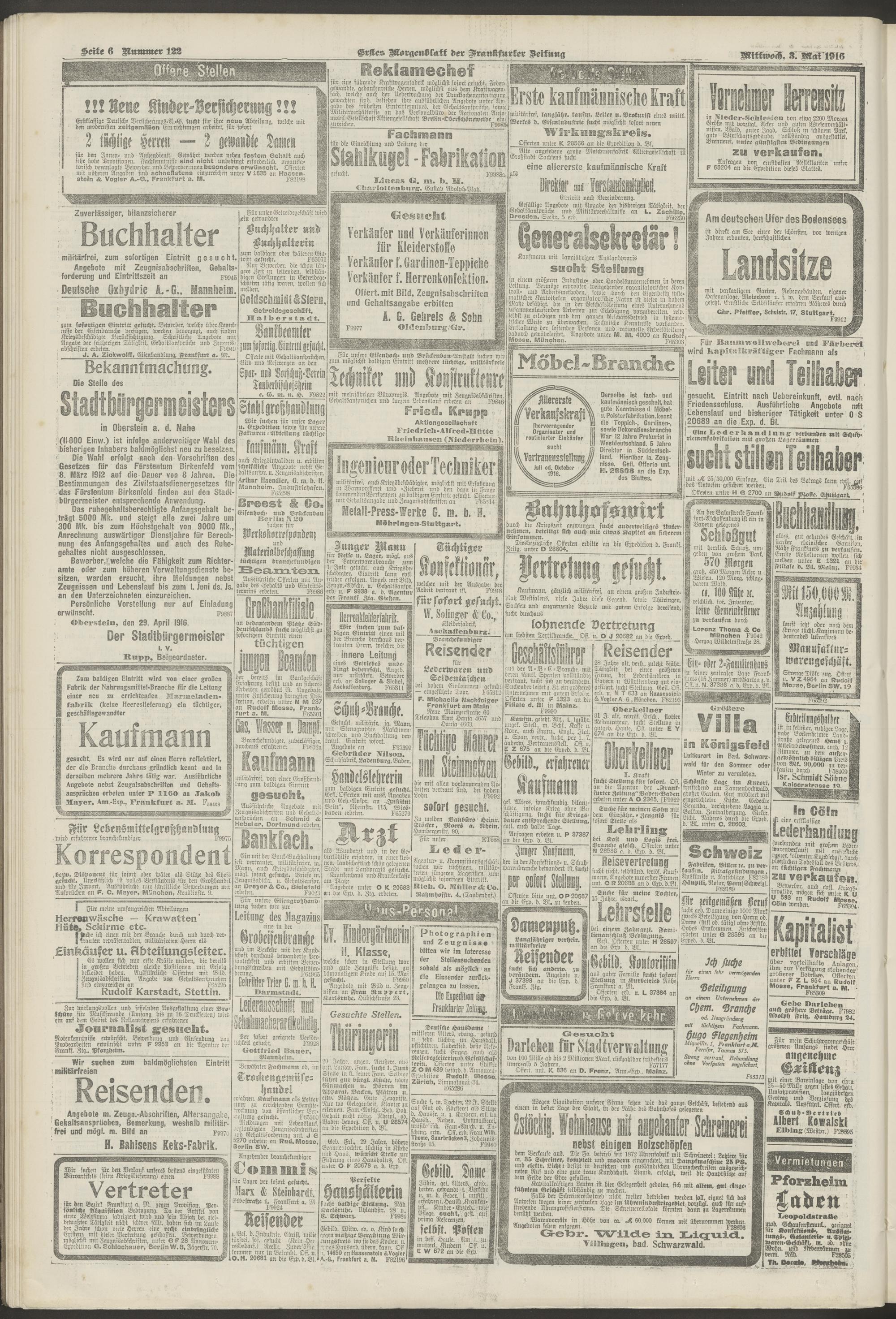 03.05.1916 = Nr. 122. Erstes Morgenblatt