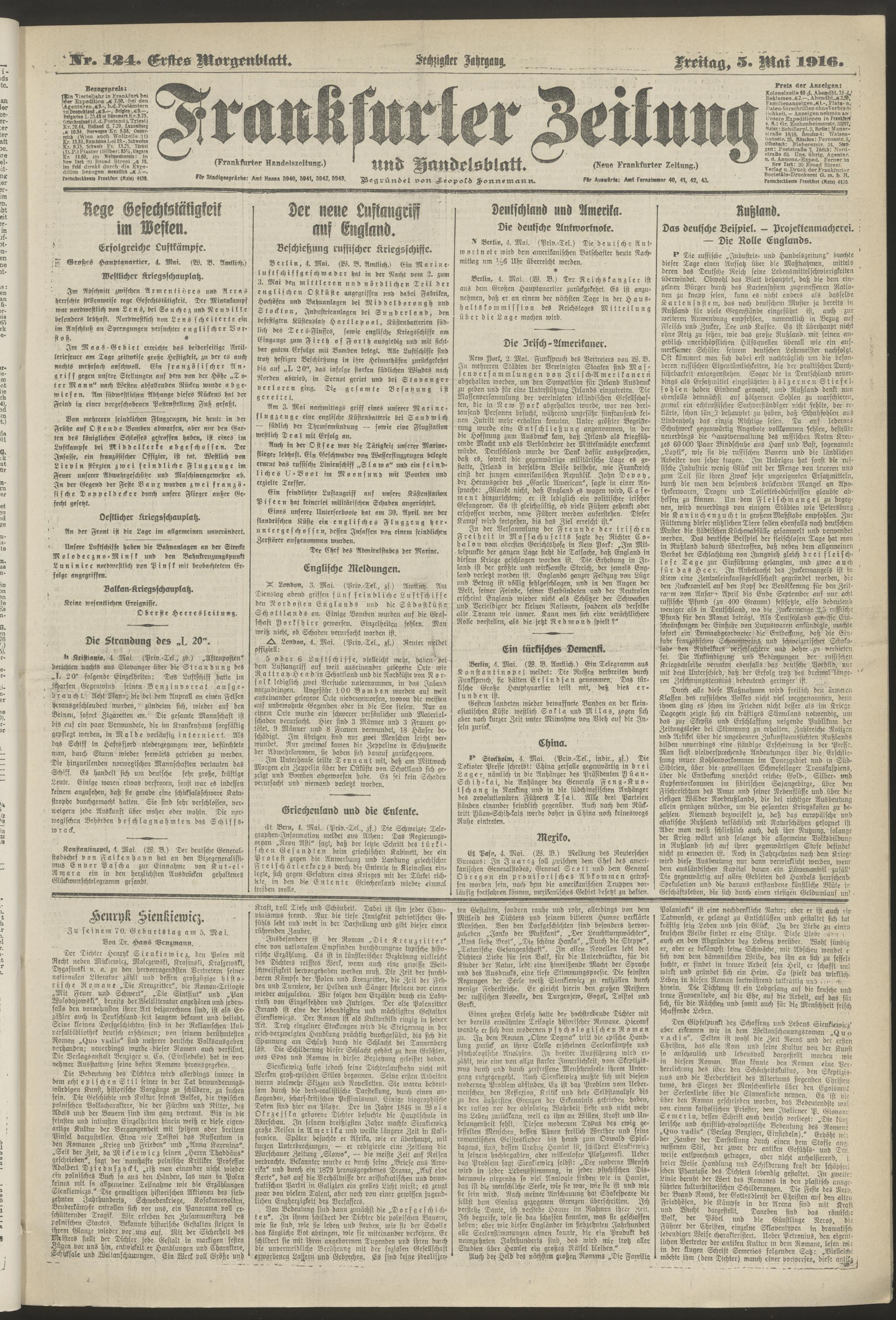 05.05.1916 = Nr. 124. Erstes Morgenblatt