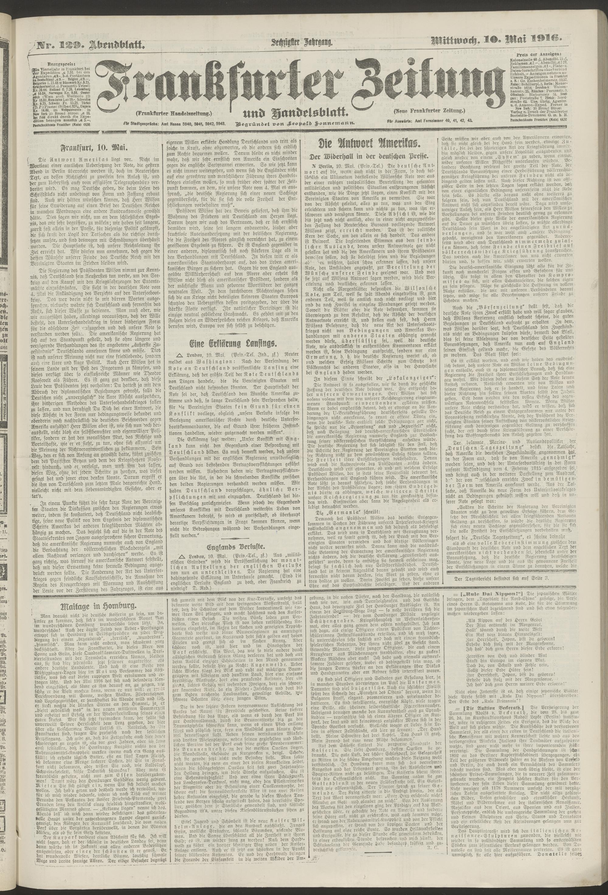 10.05.1916 = Nr. 129. Abendblatt