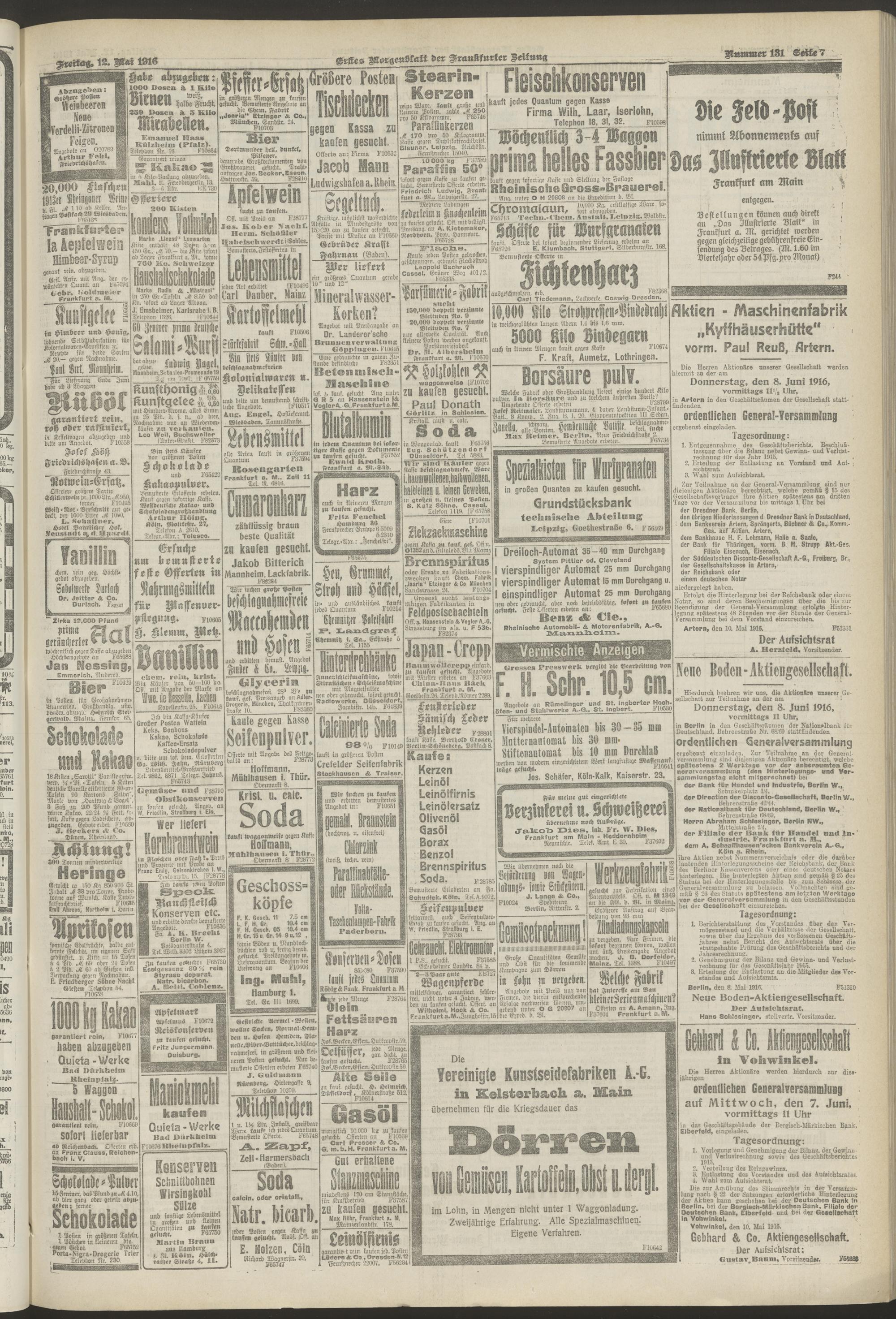 12.05.1916 = Nr. 131. Erstes Morgenblatt