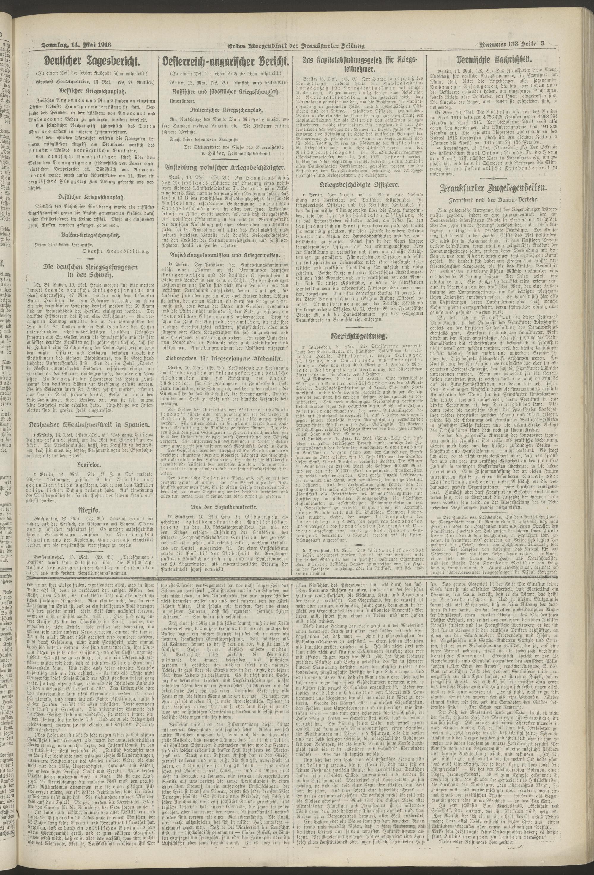 14.05.1916 = Nr. 133. Erstes Morgenblatt