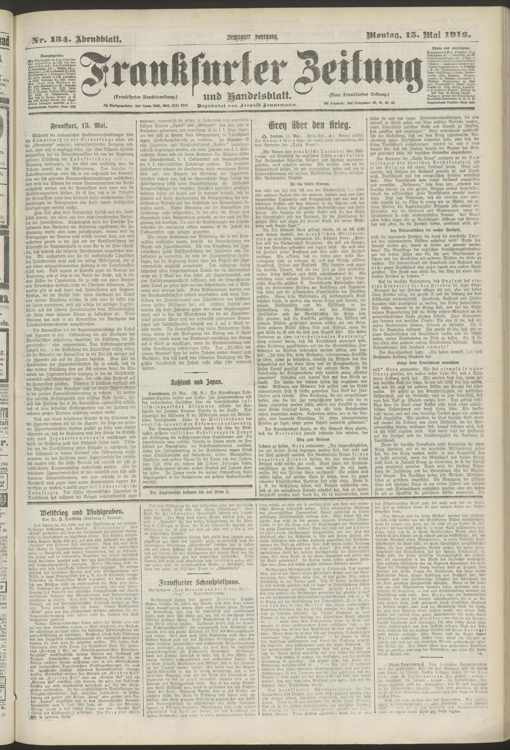 15.05.1916 = Nr. 134. Abendblatt