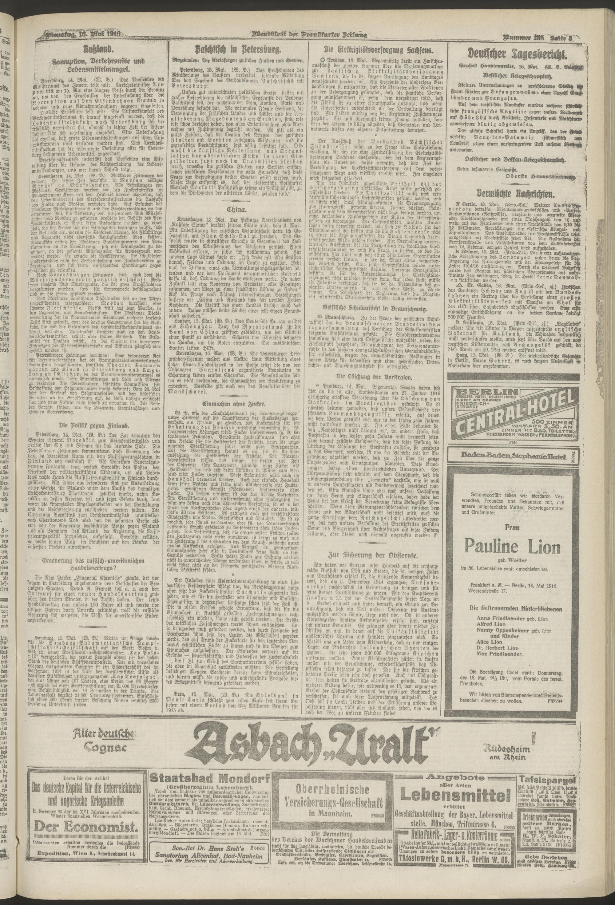 16.05.1916 = Nr. 135. Abendblatt