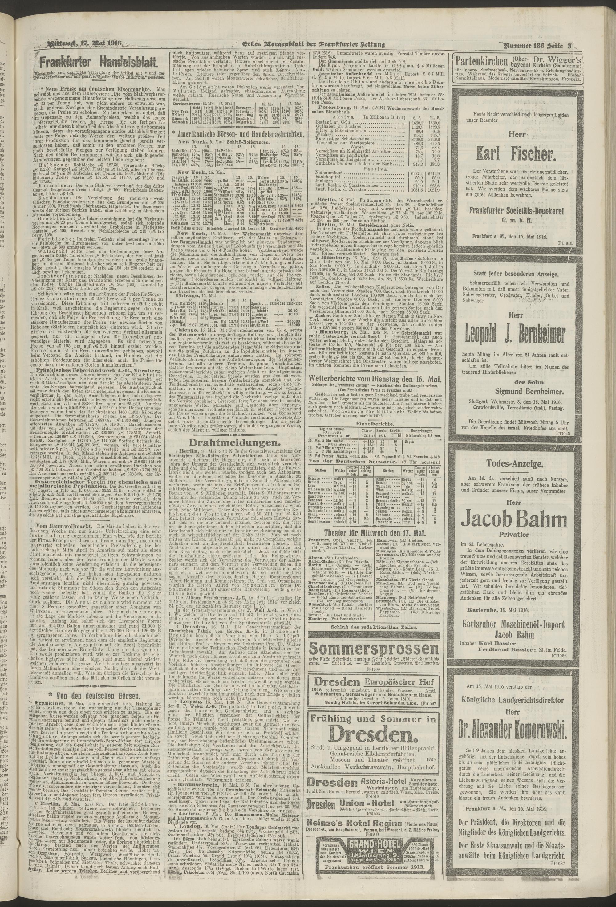 17.05.1916 = Nr. 136. Erstes Morgenblatt