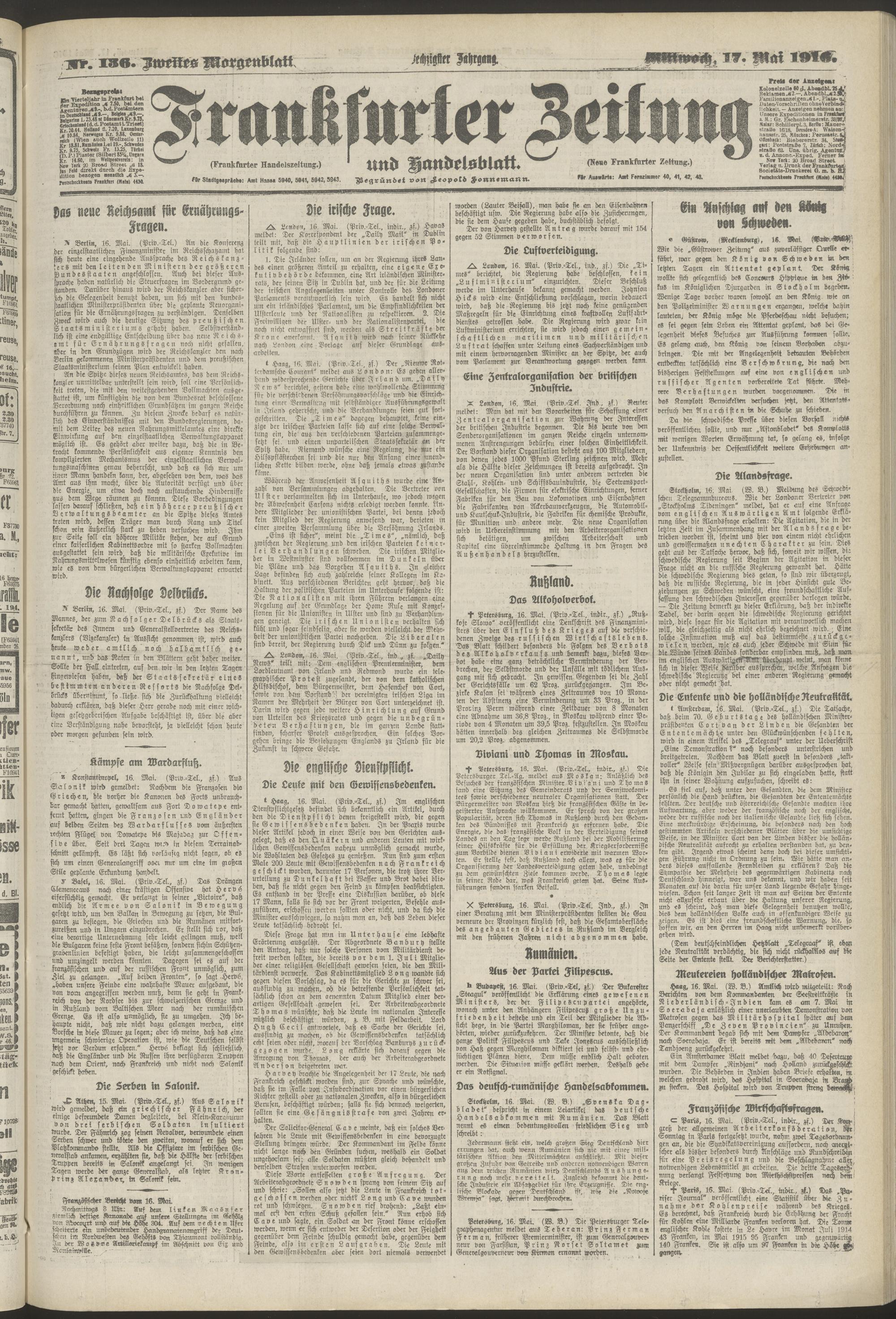 17.05.1916 = Nr. 136. Zweites Morgenblatt