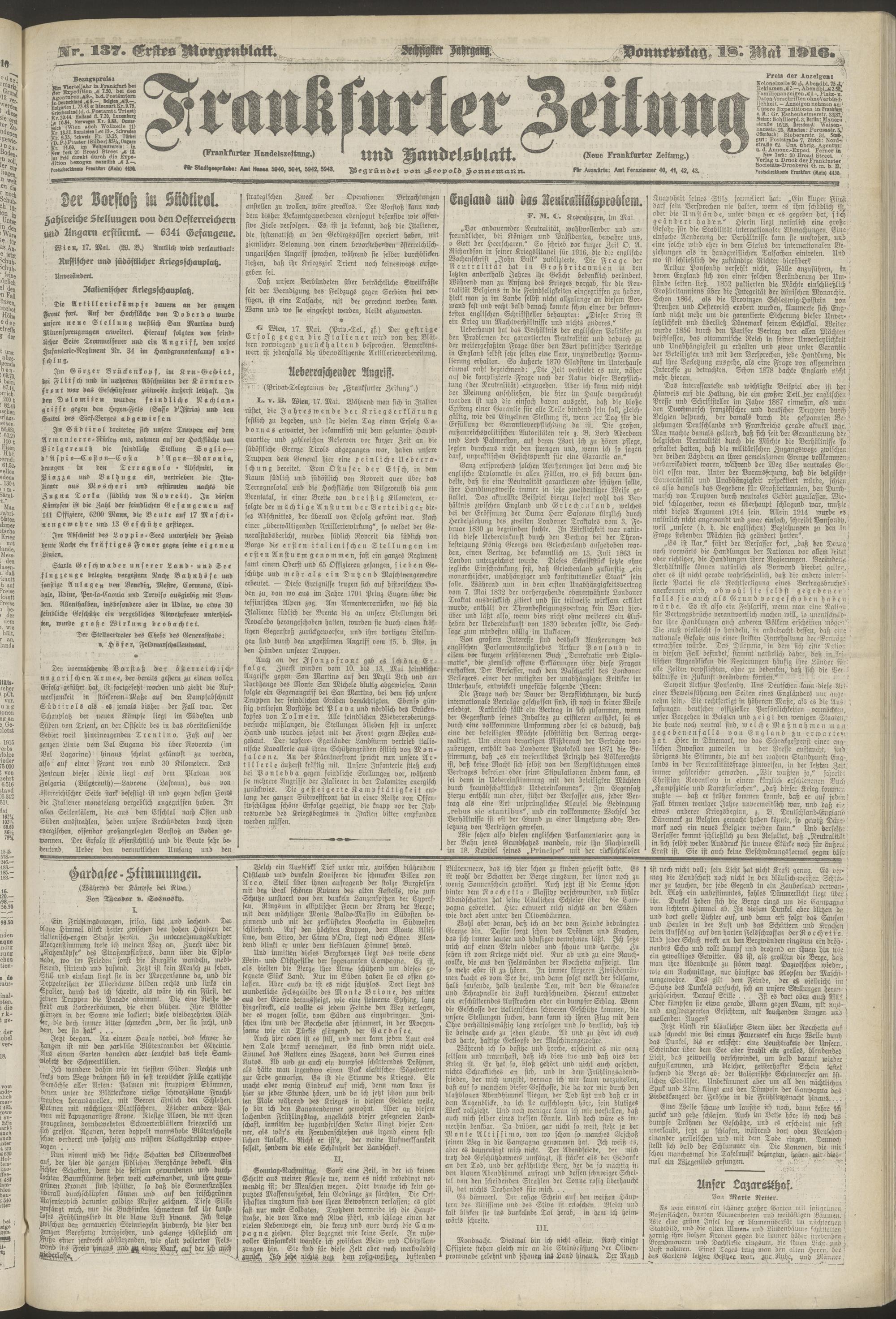 18.05.1916 = Nr. 137. Erstes Morgenblatt