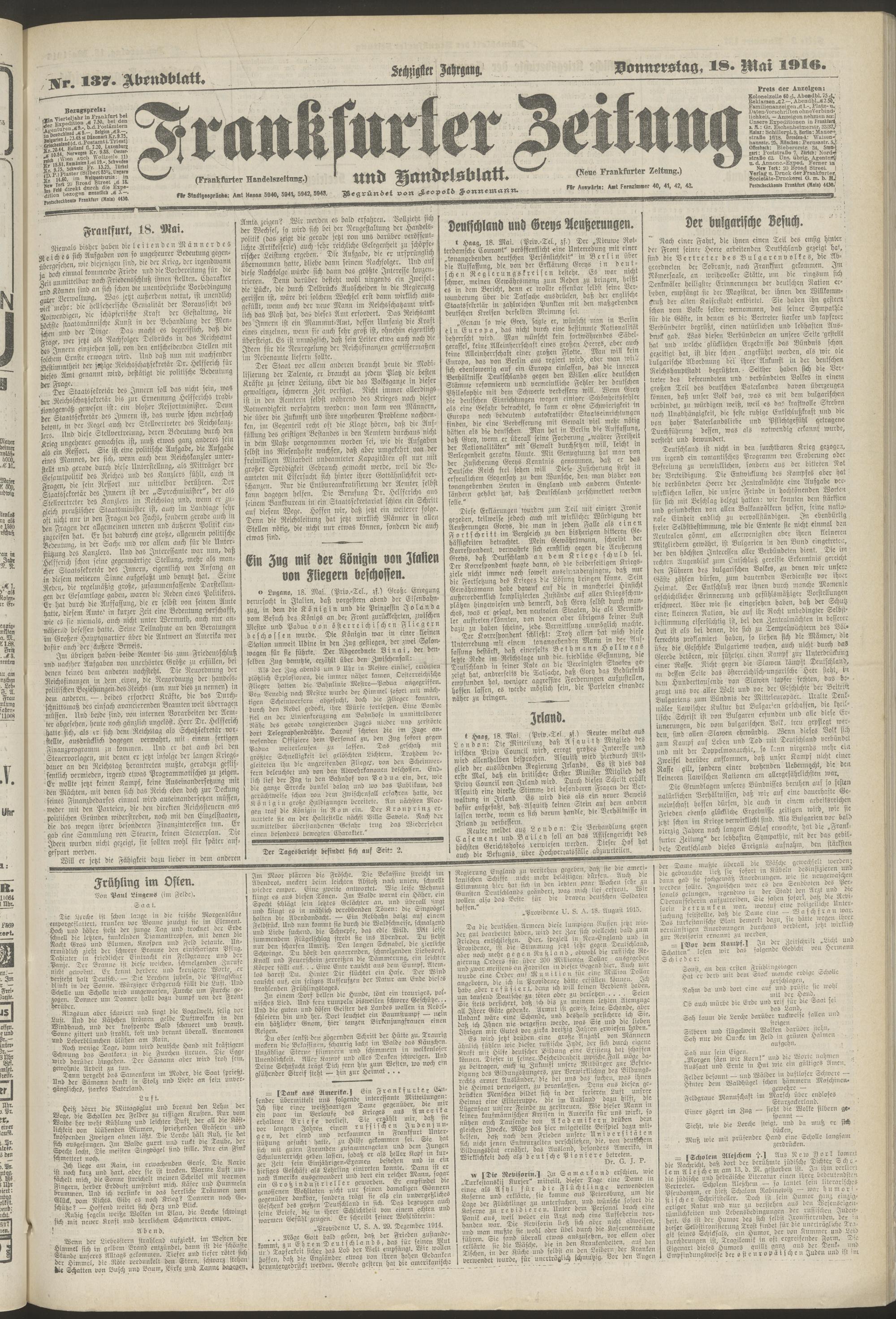 18.05.1916 = Nr. 137. Abendblatt