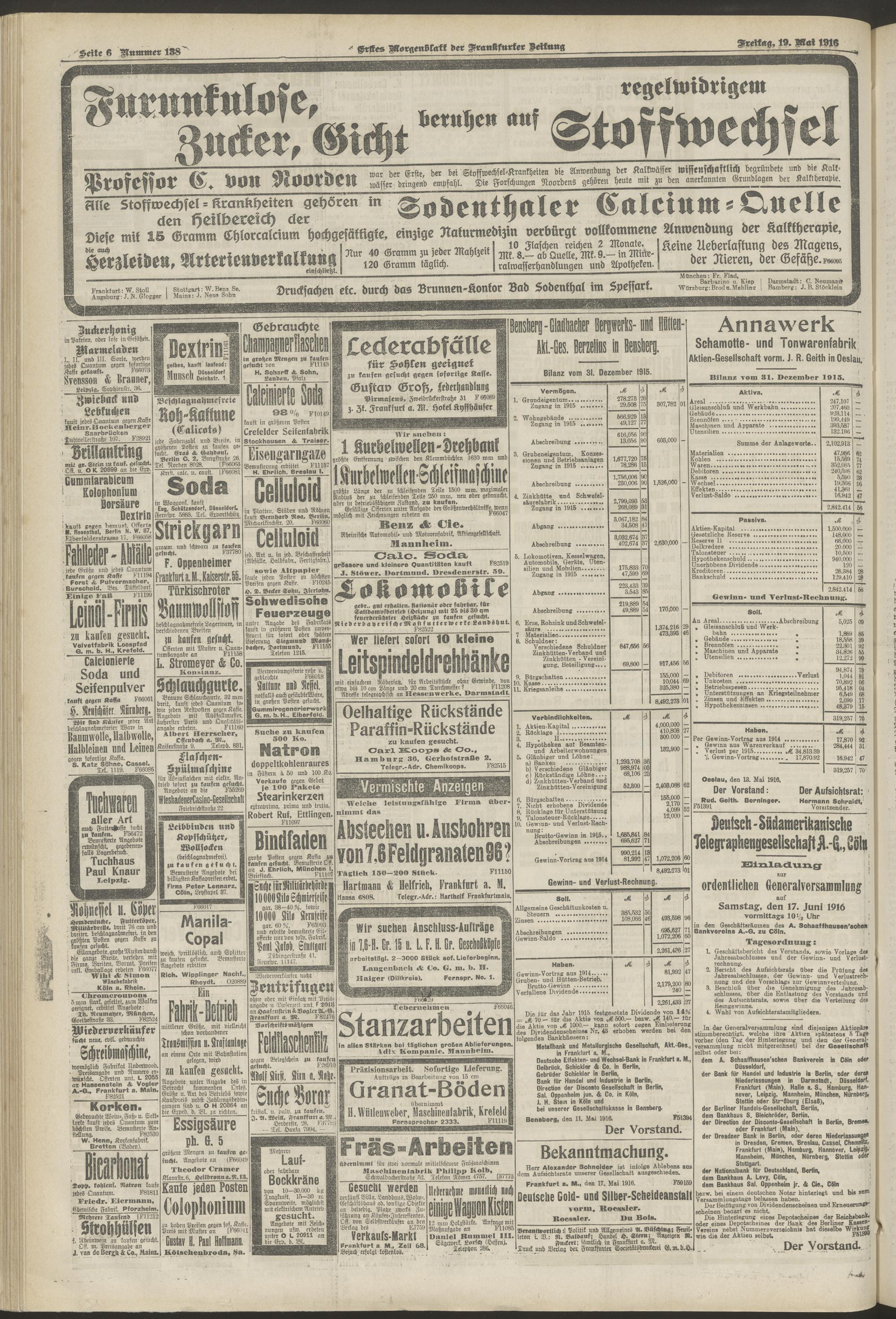 19.05.1916 = Nr. 138. Erstes Morgenblatt