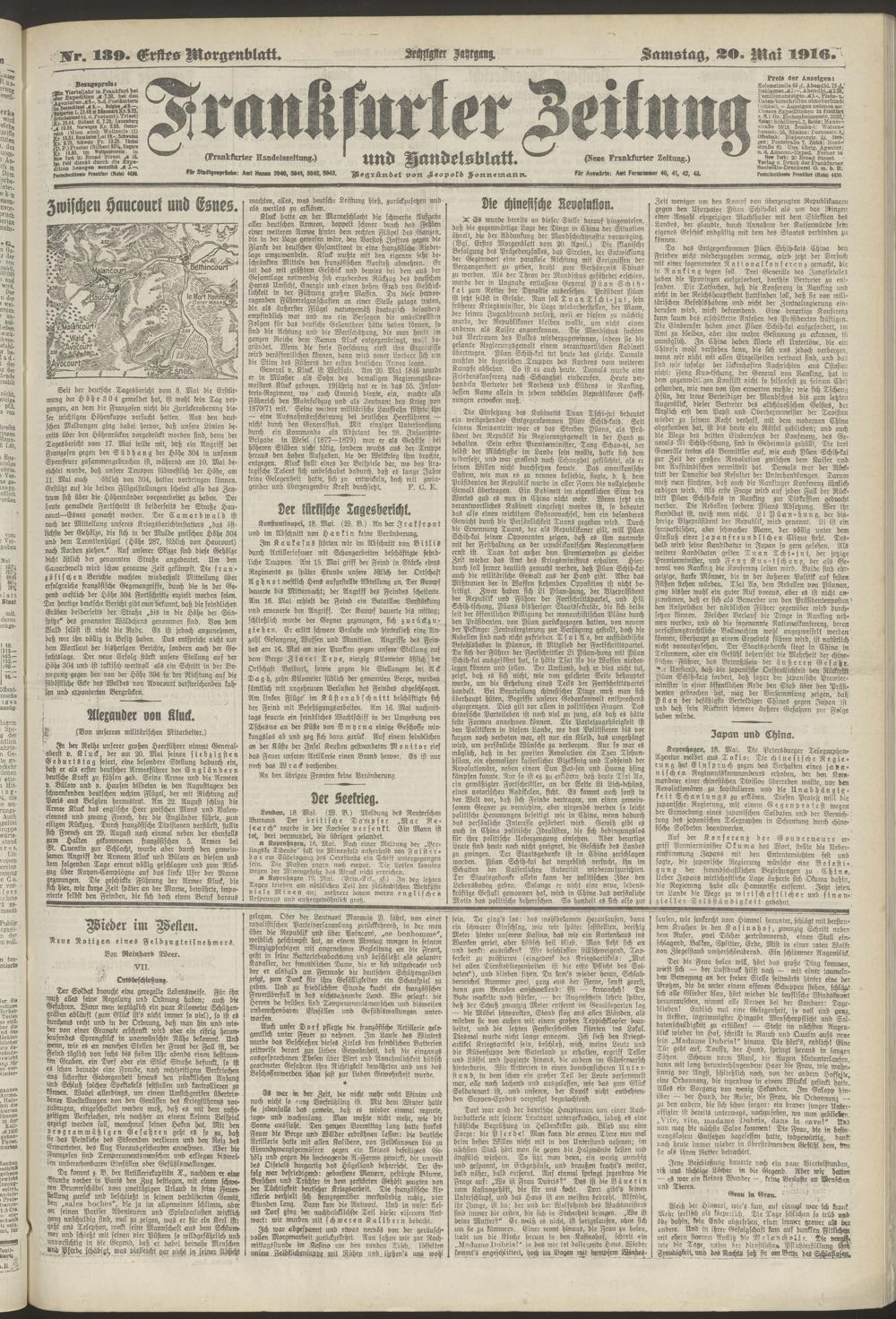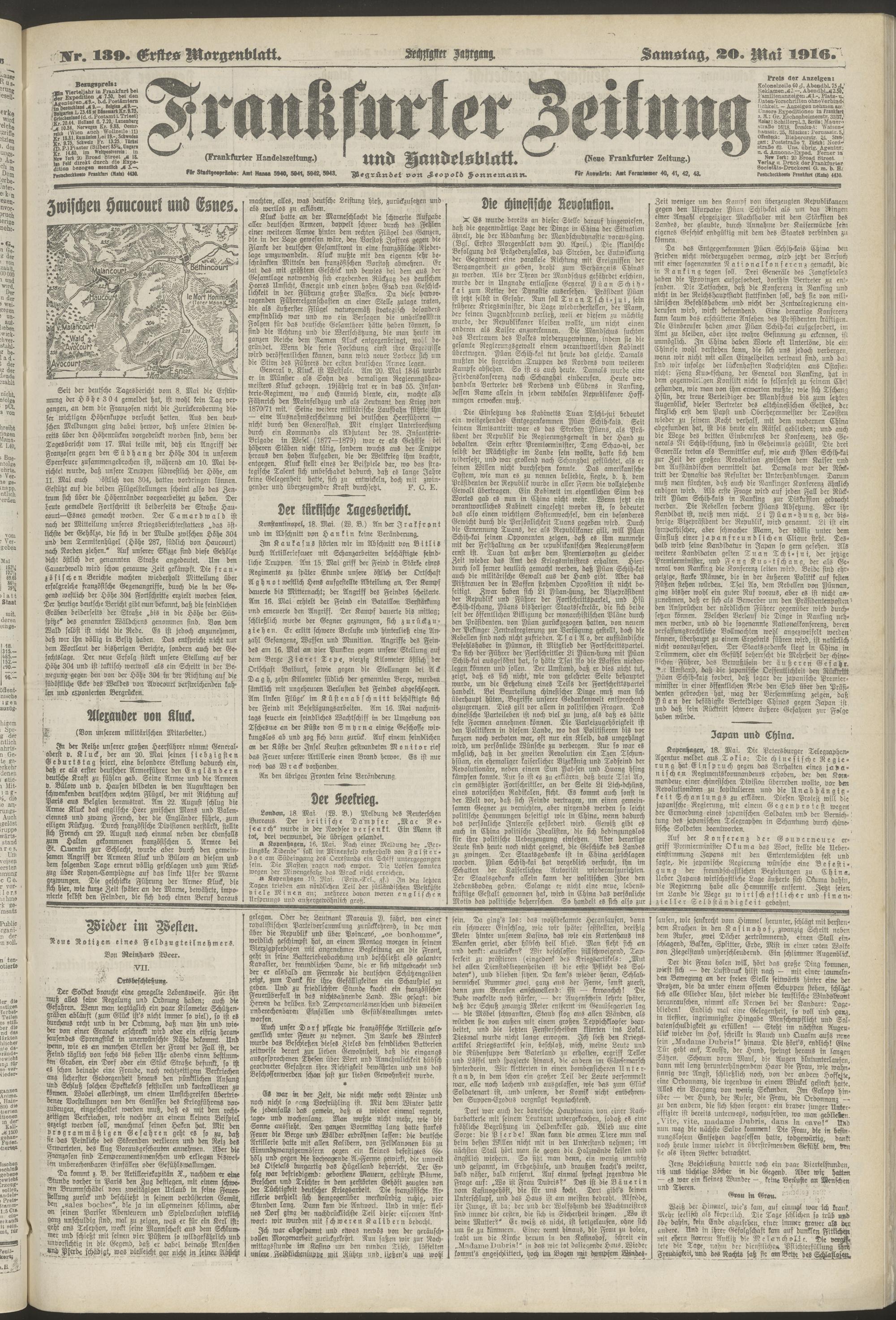 20.05.1916 = Nr. 139. Erstes Morgenblatt
