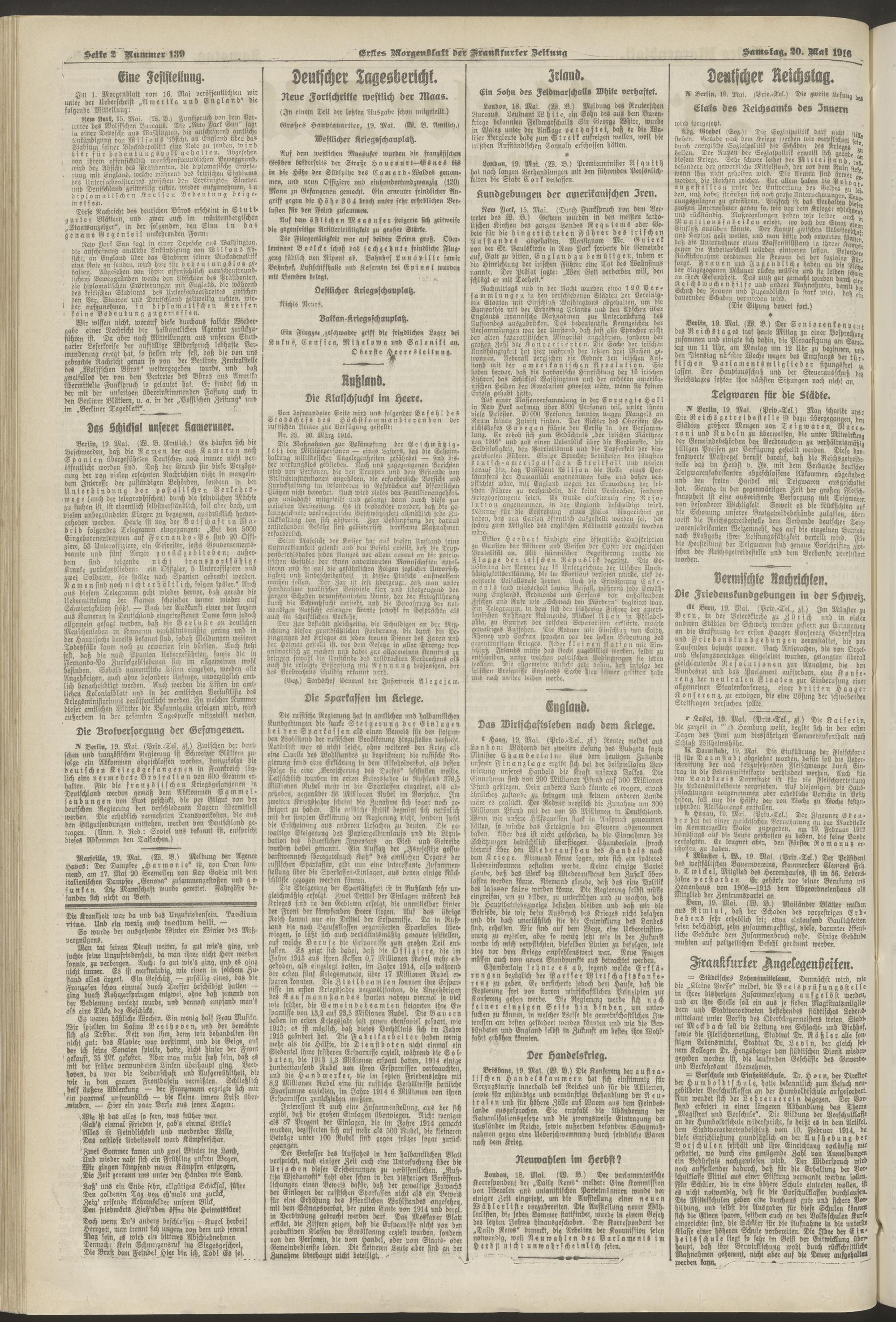 20.05.1916 = Nr. 139. Erstes Morgenblatt