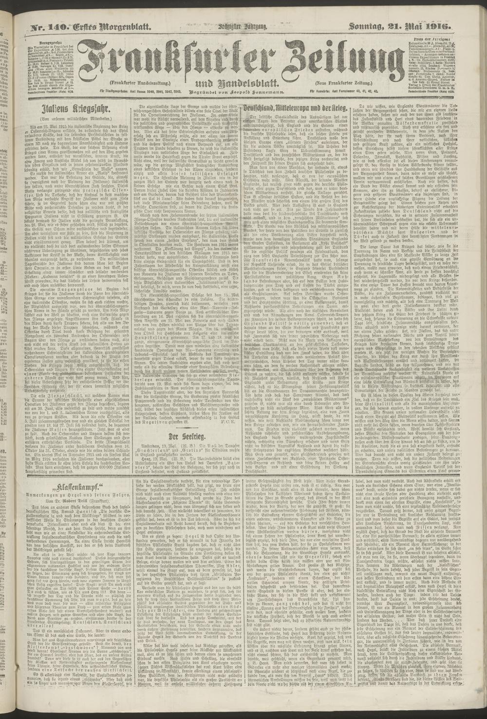 21.05.1916 = Nr. 140. Erstes Morgenblatt