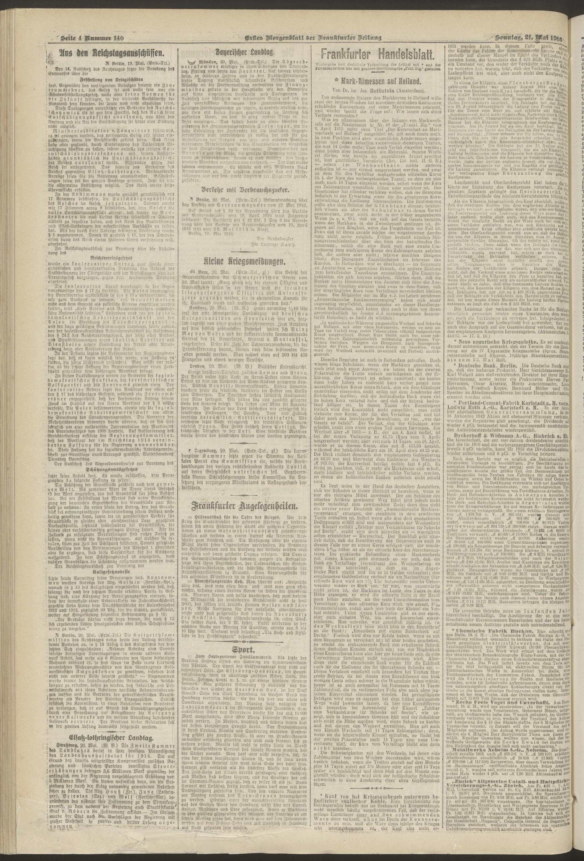 21.05.1916 = Nr. 140. Erstes Morgenblatt