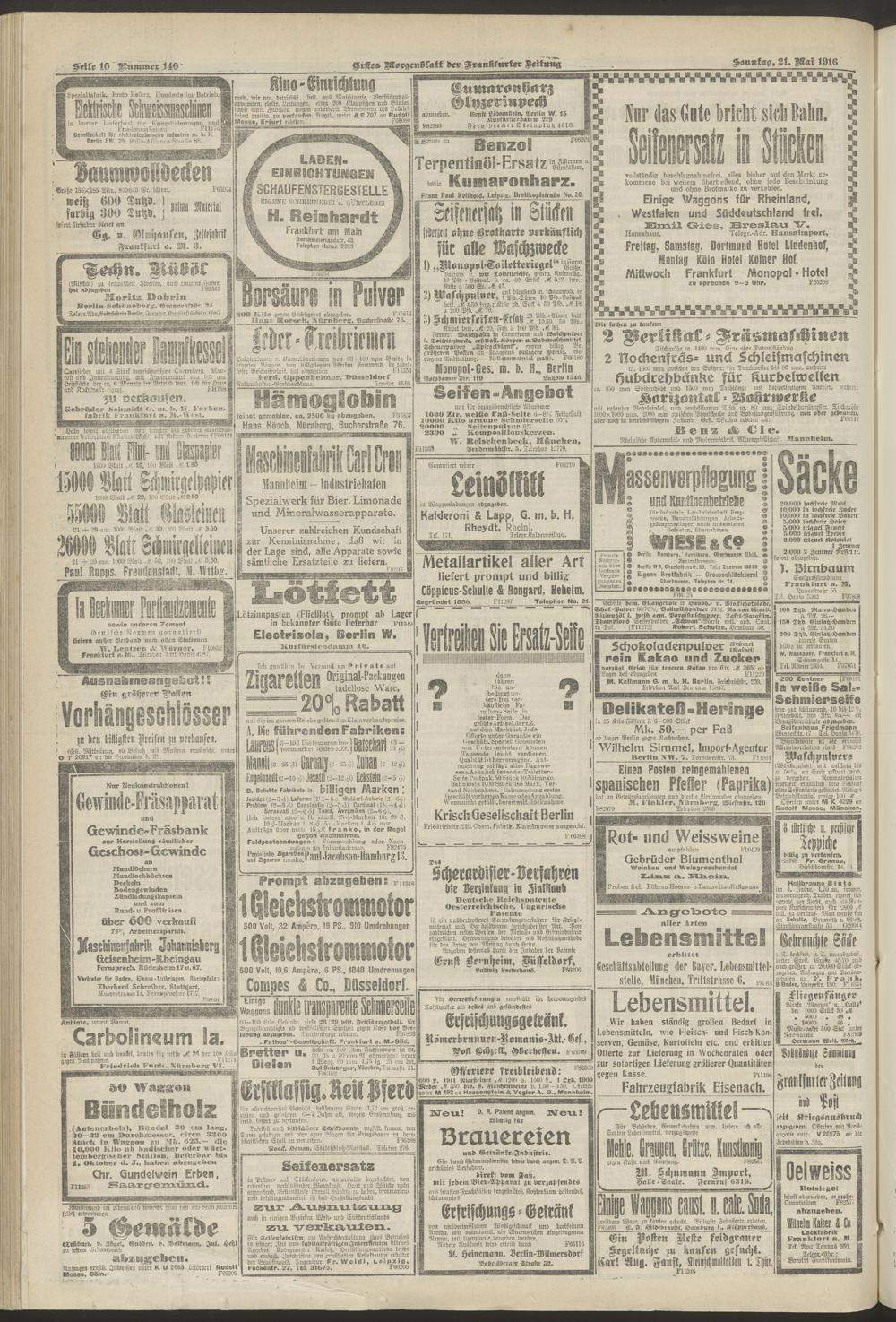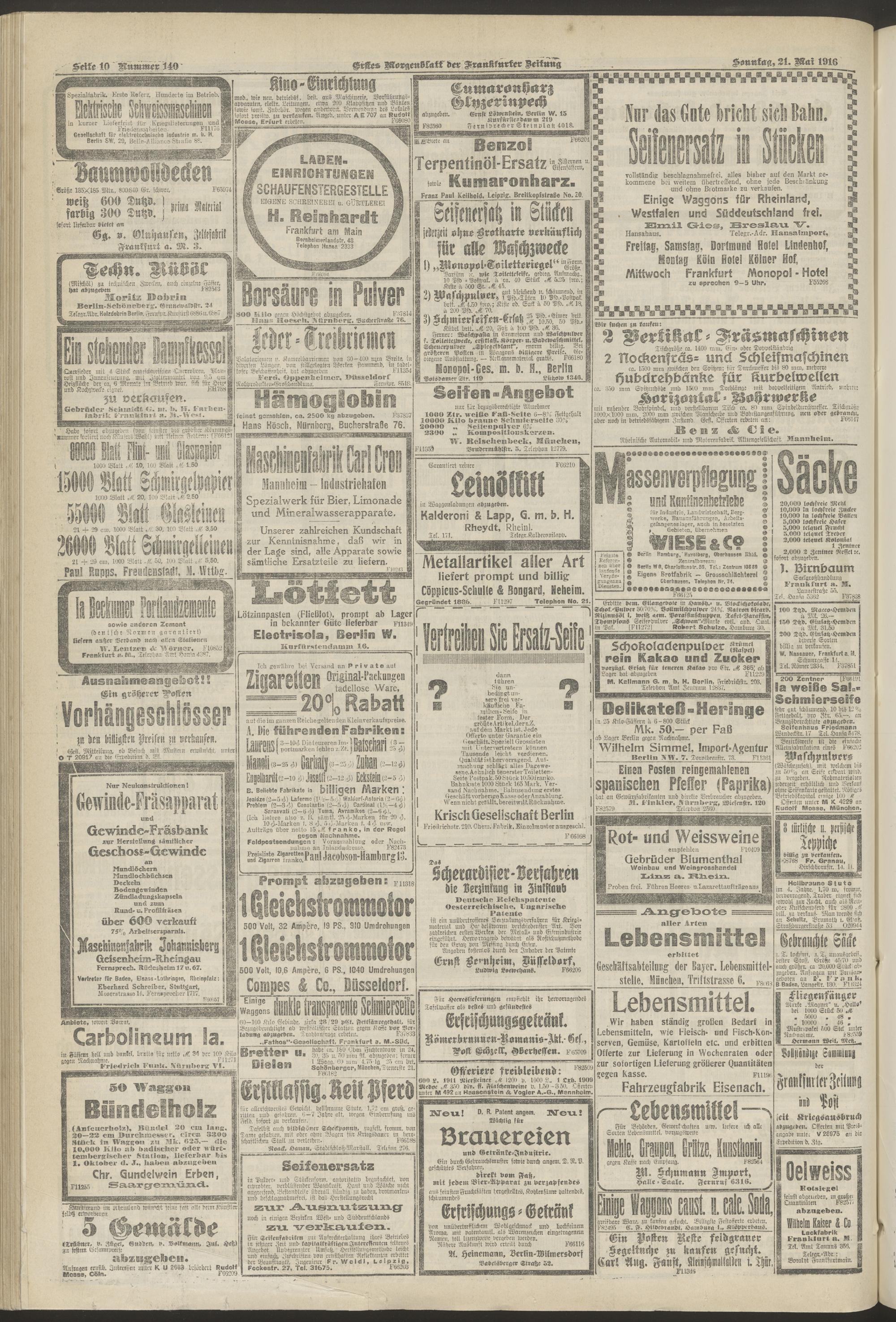 21.05.1916 = Nr. 140. Erstes Morgenblatt