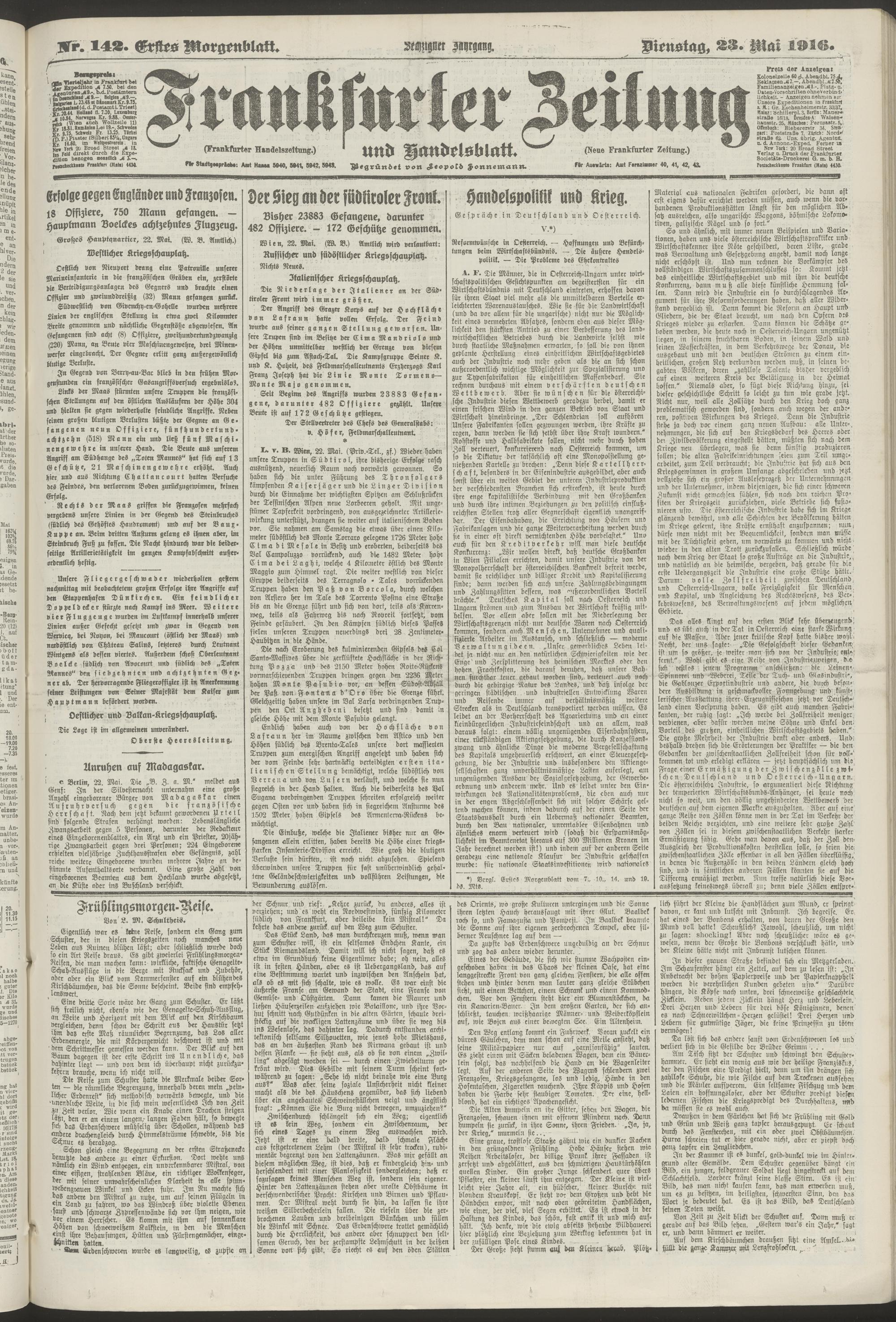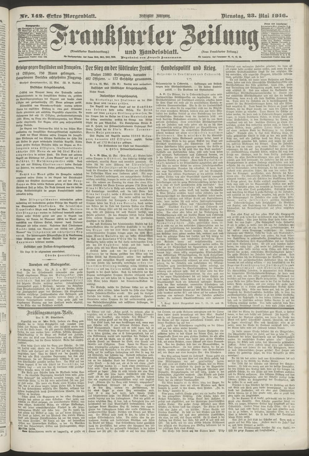 23.05.1916 = Nr. 142. Erstes Morgenblatt