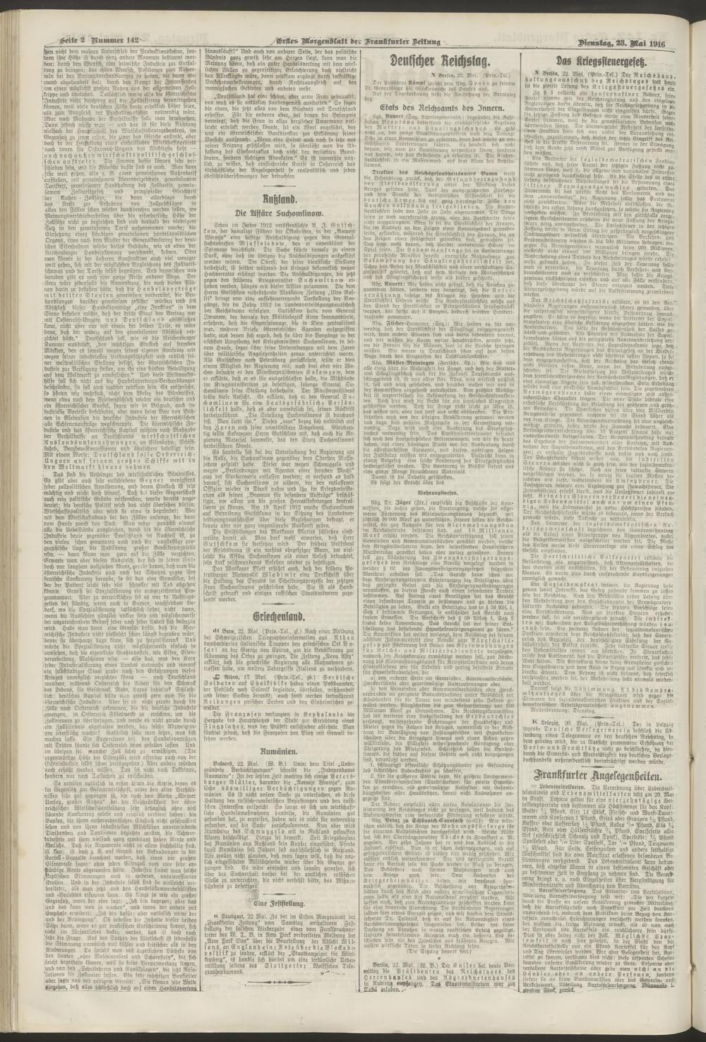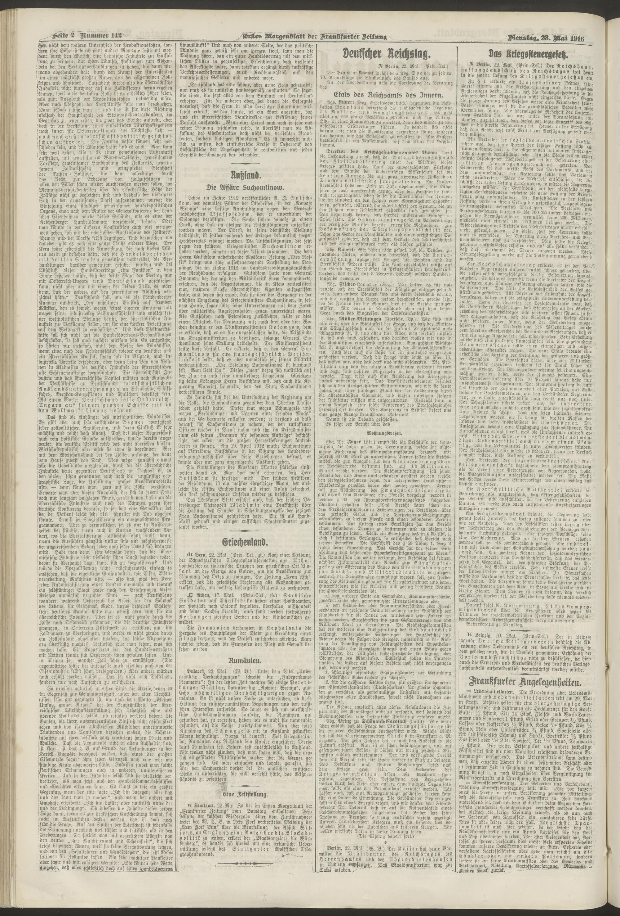 23.05.1916 = Nr. 142. Erstes Morgenblatt