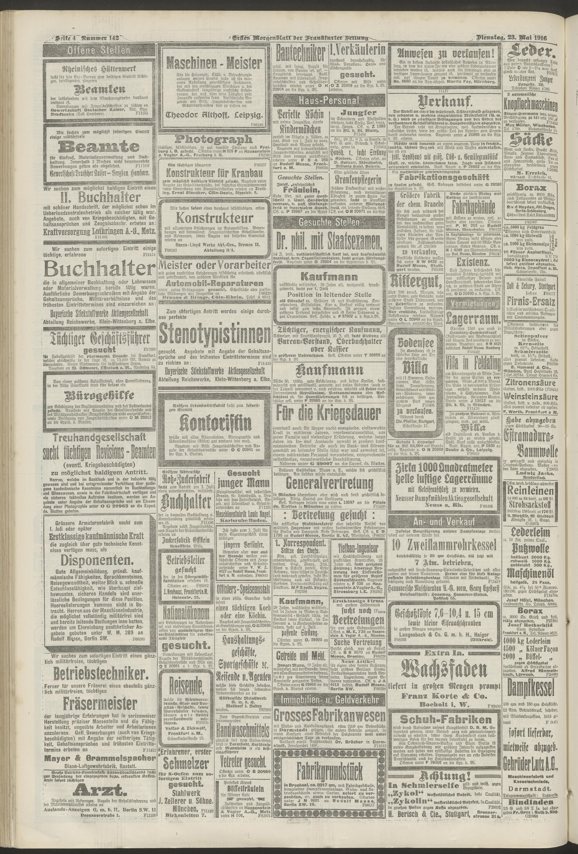 23.05.1916 = Nr. 142. Erstes Morgenblatt