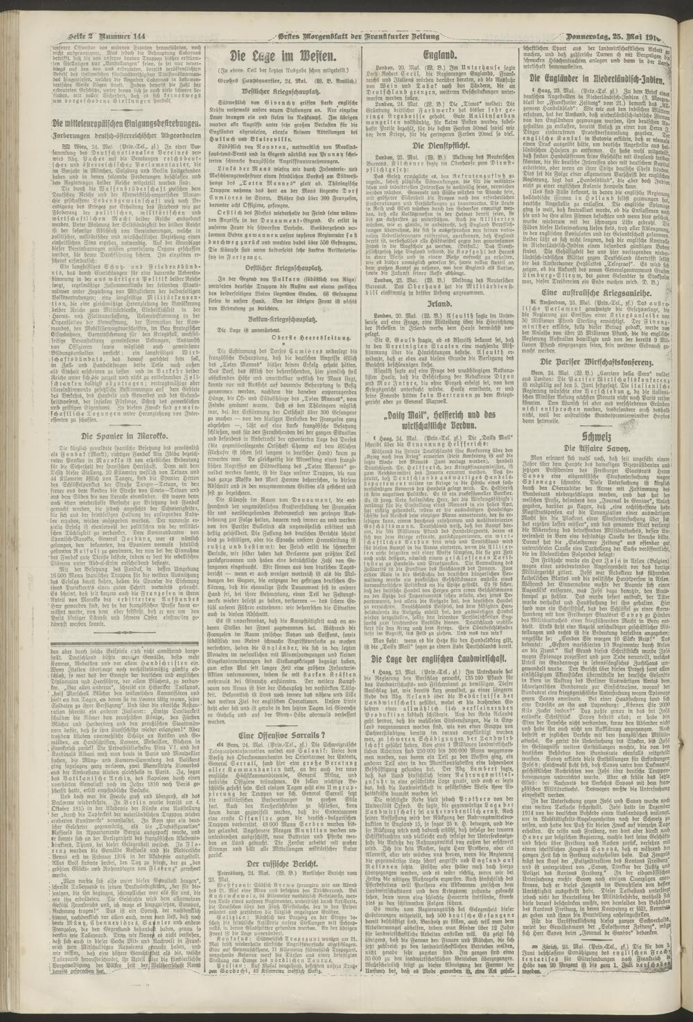 25.05.1916 = Nr. 144. Erstes Morgenblatt