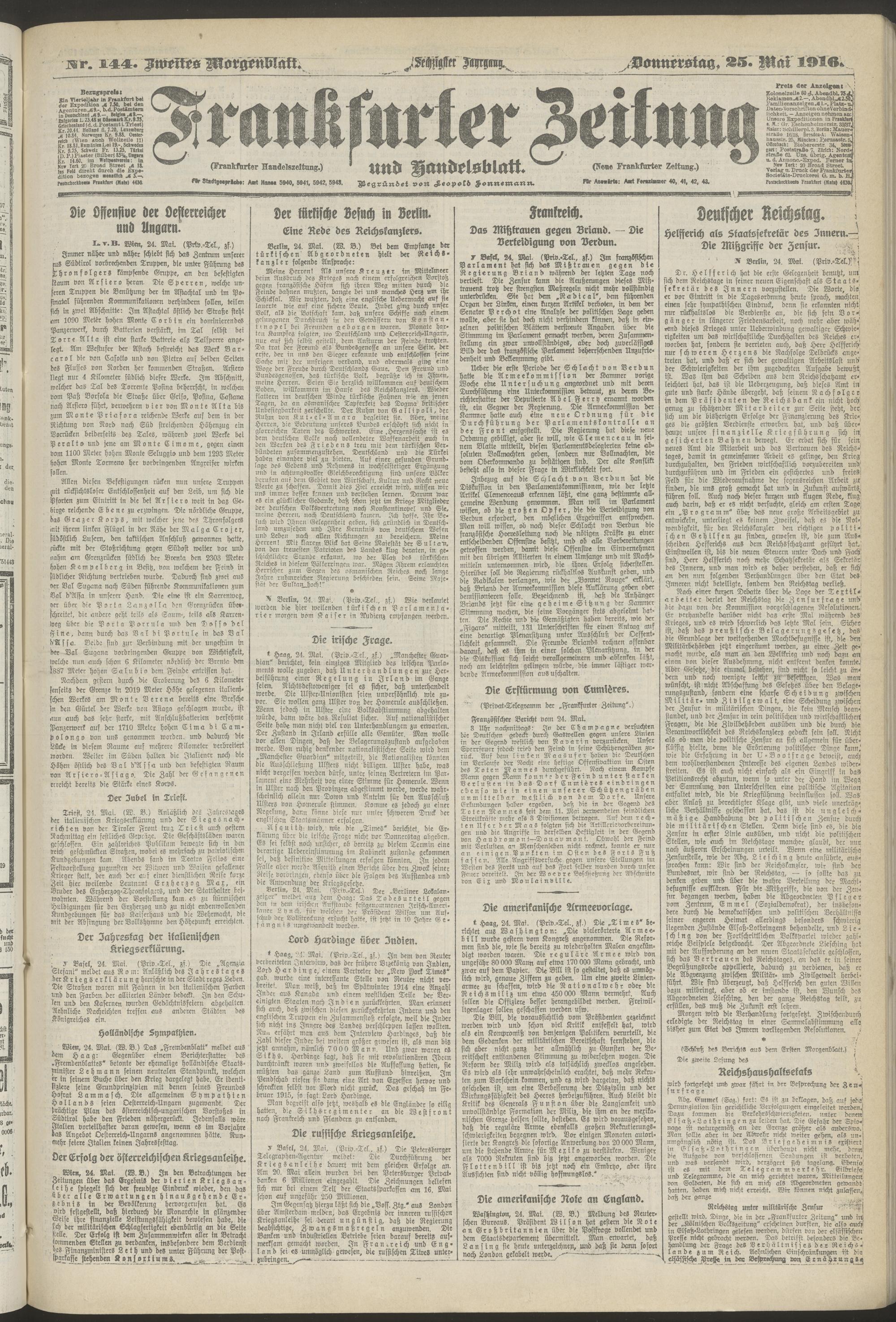 25.05.1916 = Nr. 144. Zweites Morgenblatt