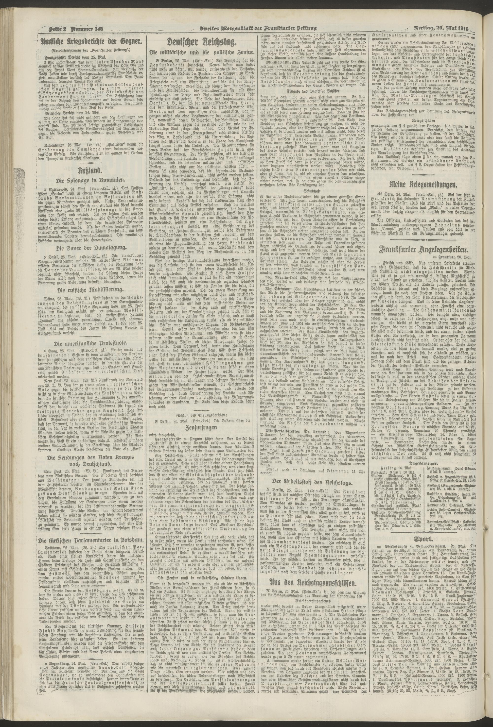 26.05.1916 = Nr. 145. Zweites Morgenblatt