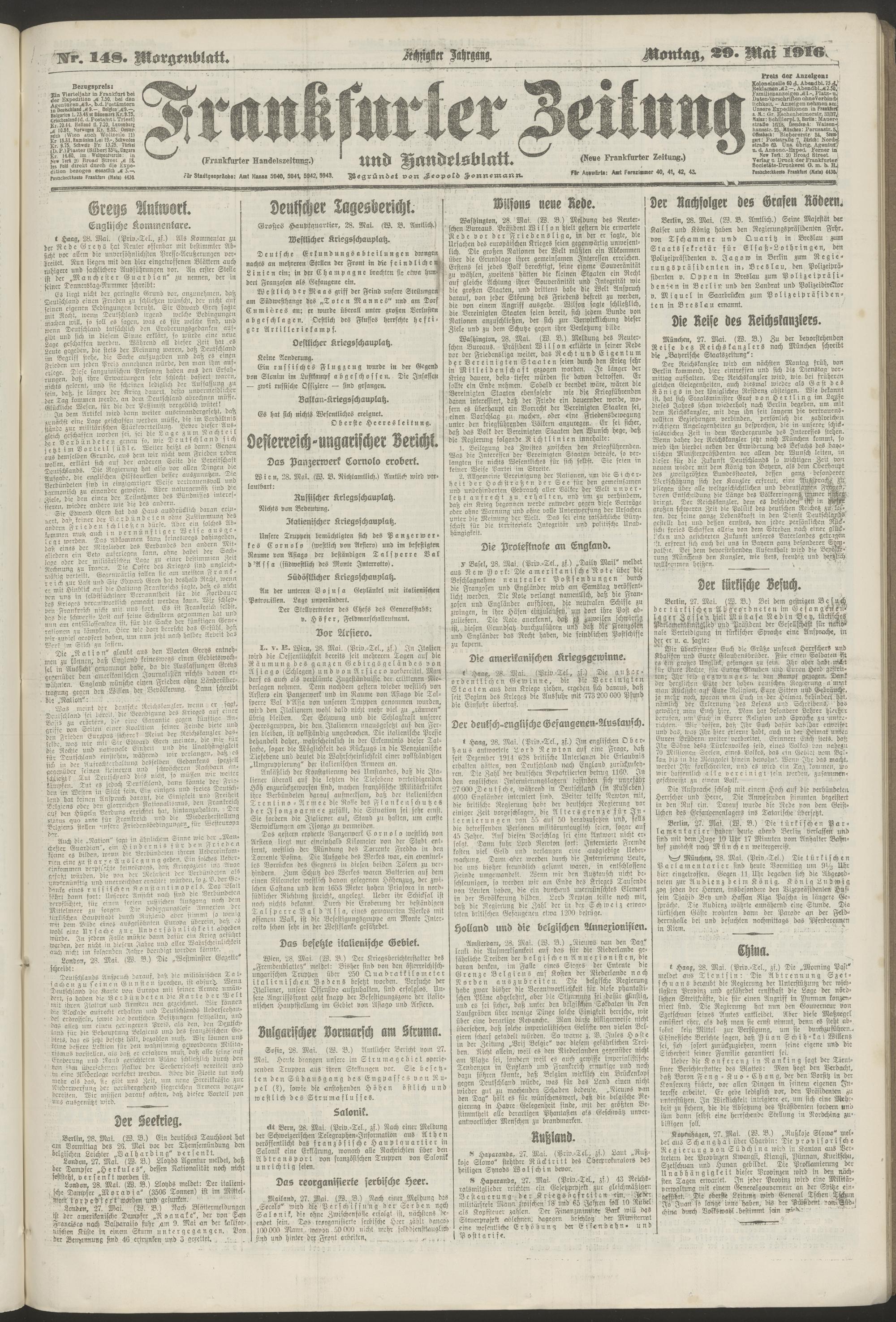 29.05.1916 = Nr. 148. Morgenblatt