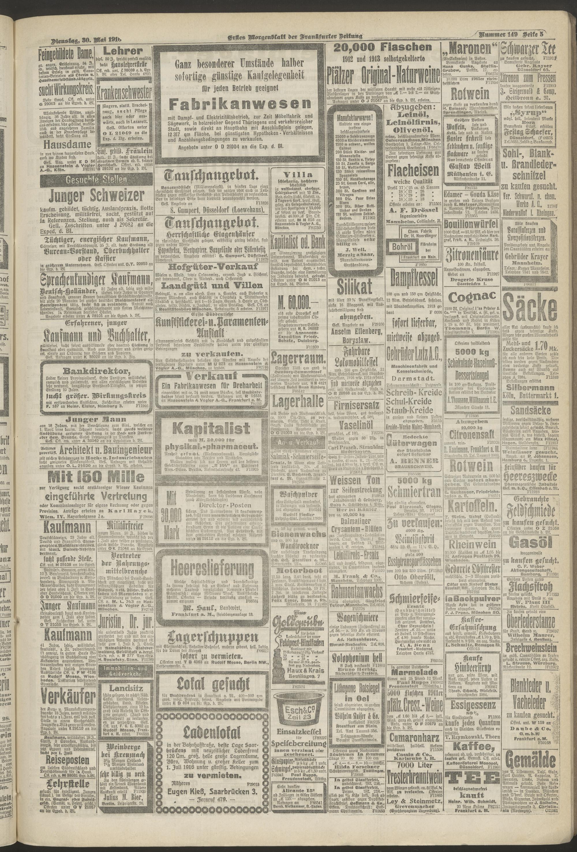 30.05.1916 = Nr. 149. Erstes Morgenblatt