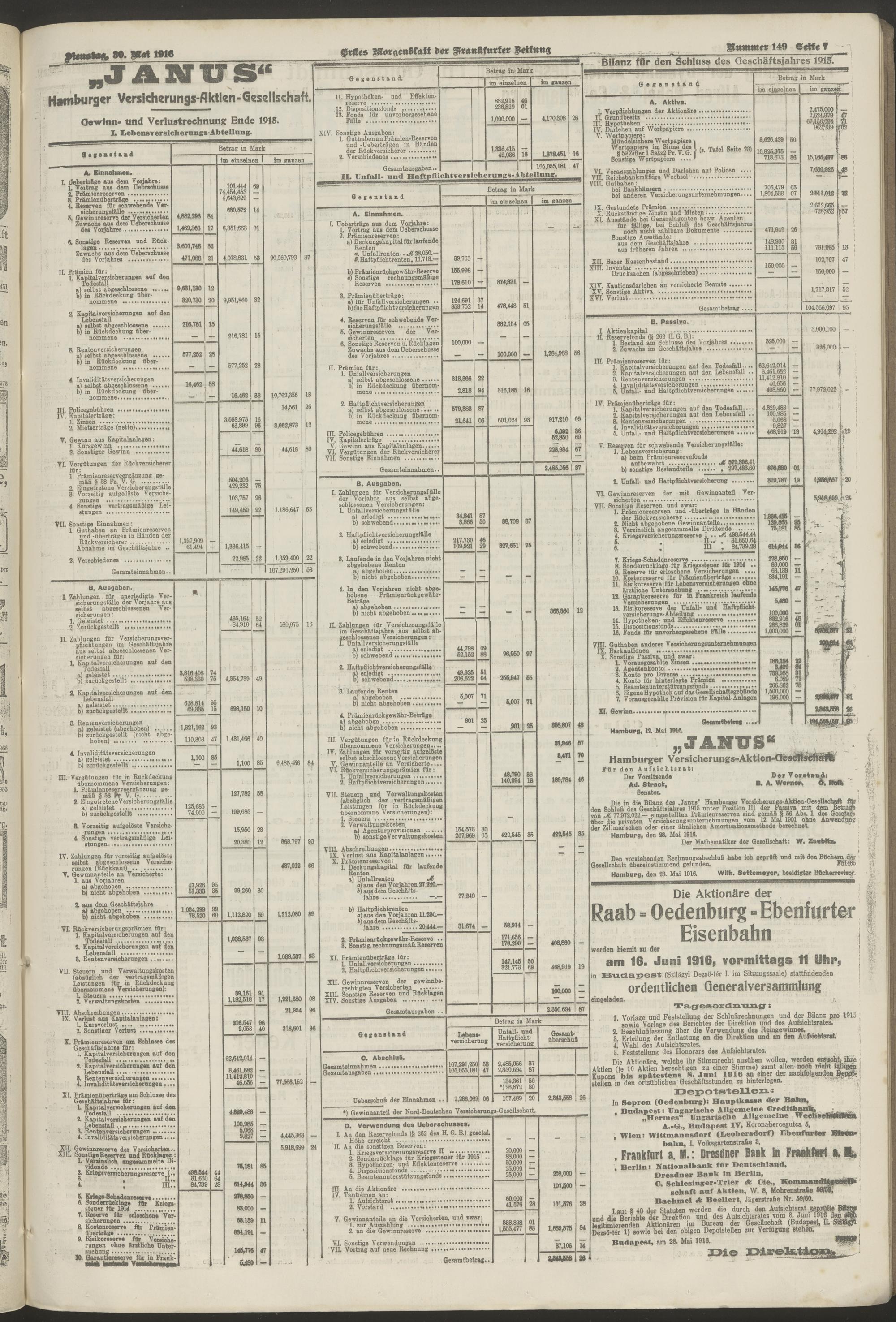 30.05.1916 = Nr. 149. Erstes Morgenblatt
