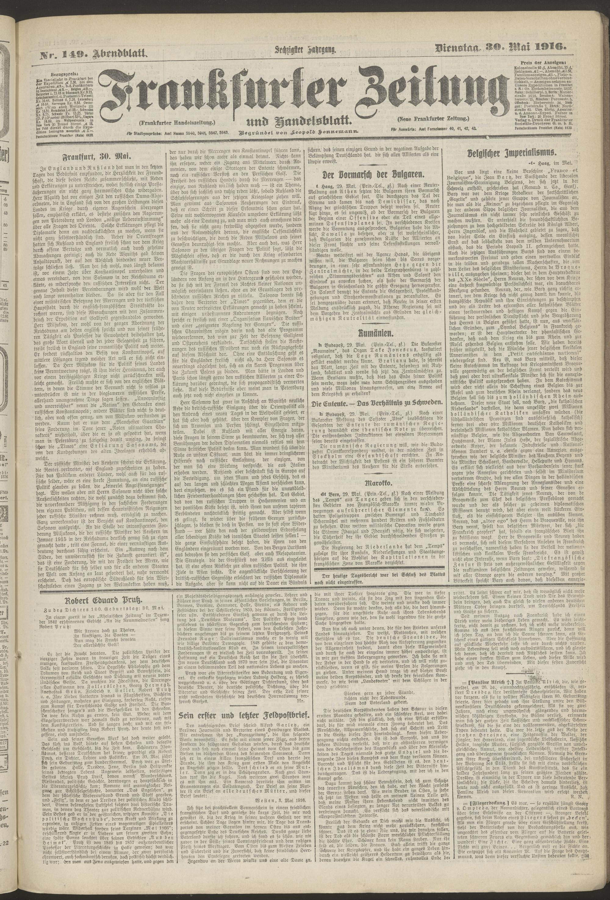 30.05.1916 = Nr. 149. Abendblatt