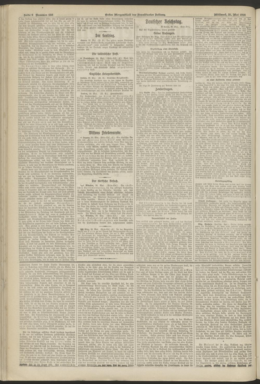 31.05.1916 = Nr. 150. Erstes Morgenblatt