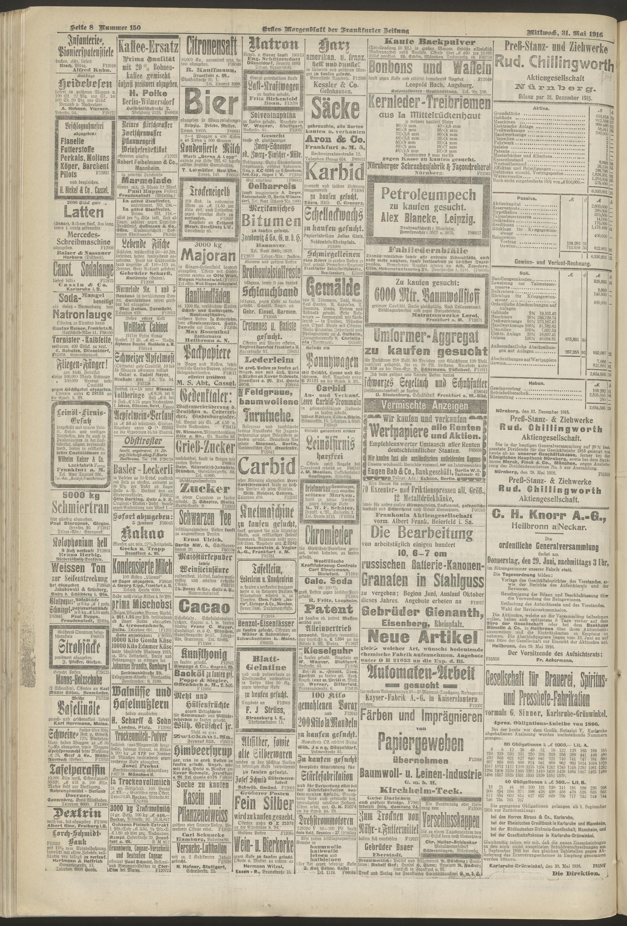 31.05.1916 = Nr. 150. Erstes Morgenblatt