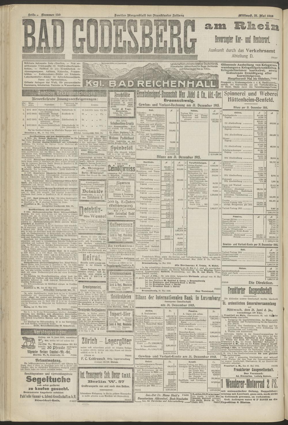 31.05.1916 = Nr. 150. Zweites Morgenblatt
