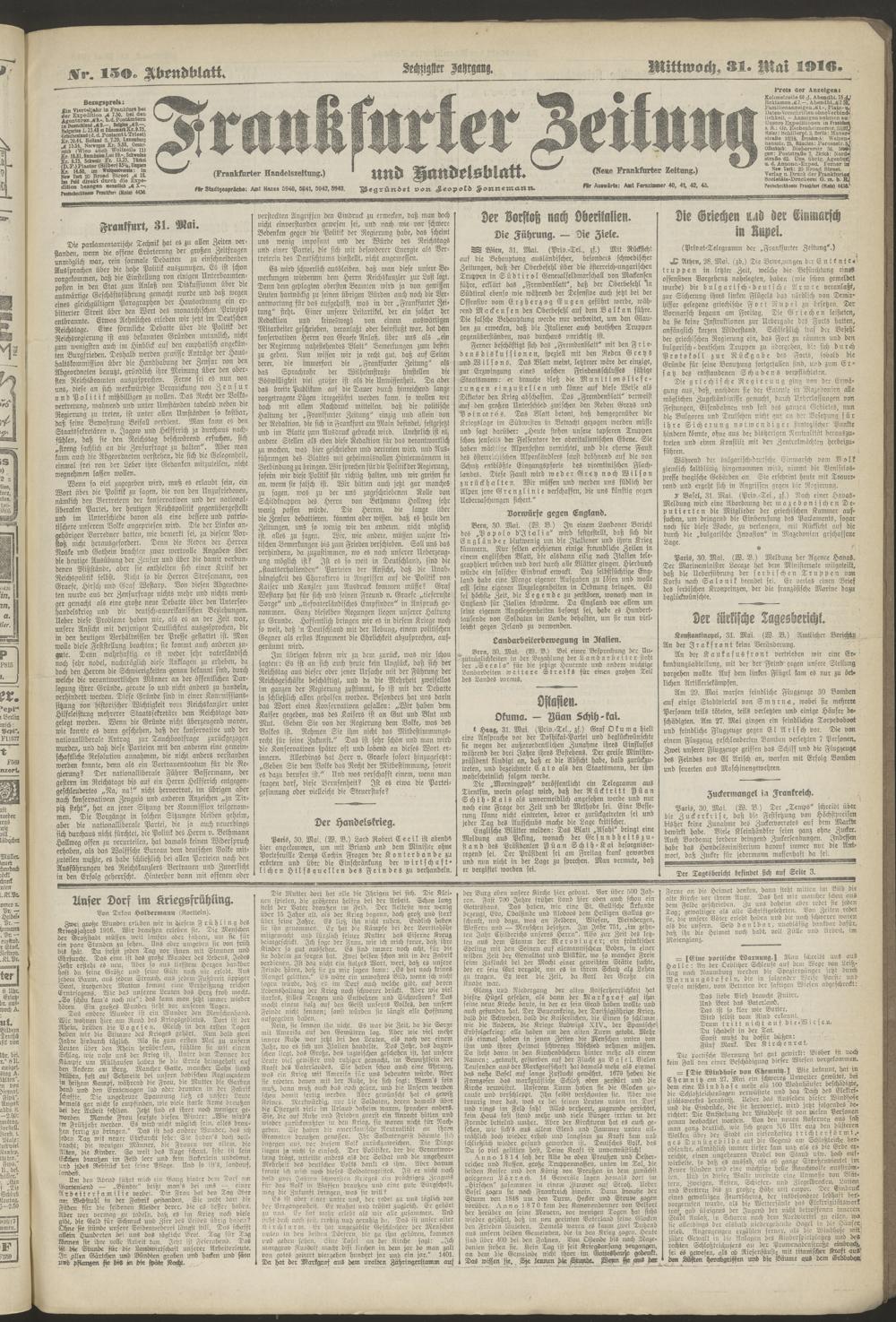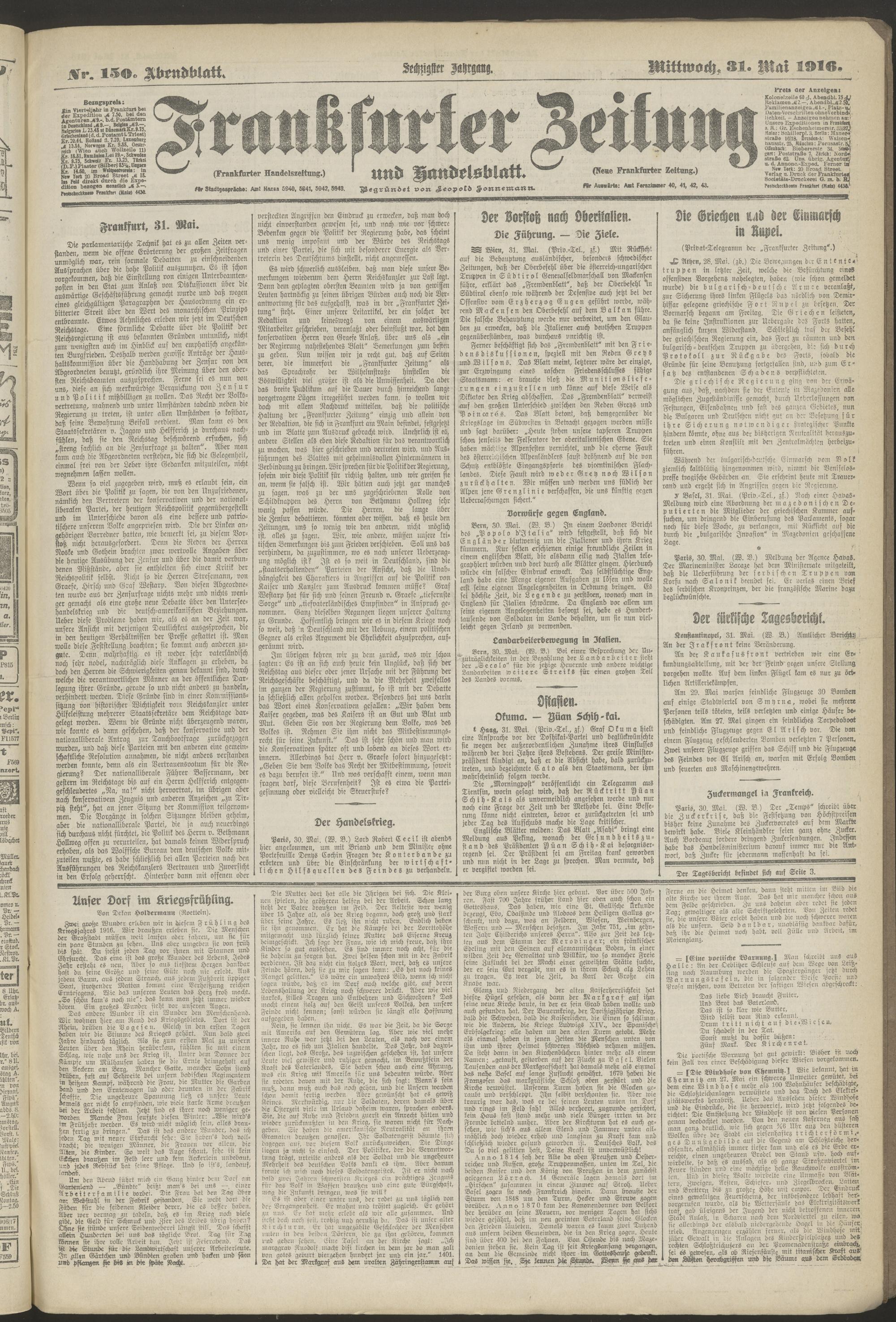 31.05.1916 = Nr. 150. Abendblatt