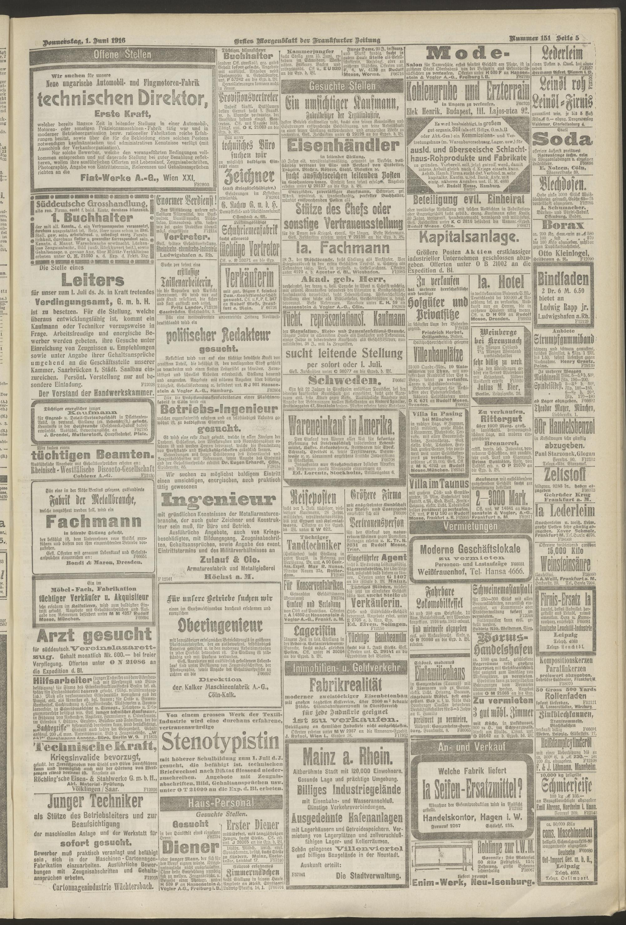 01.06.1916 = Nr. 151. Erstes Morgenblatt