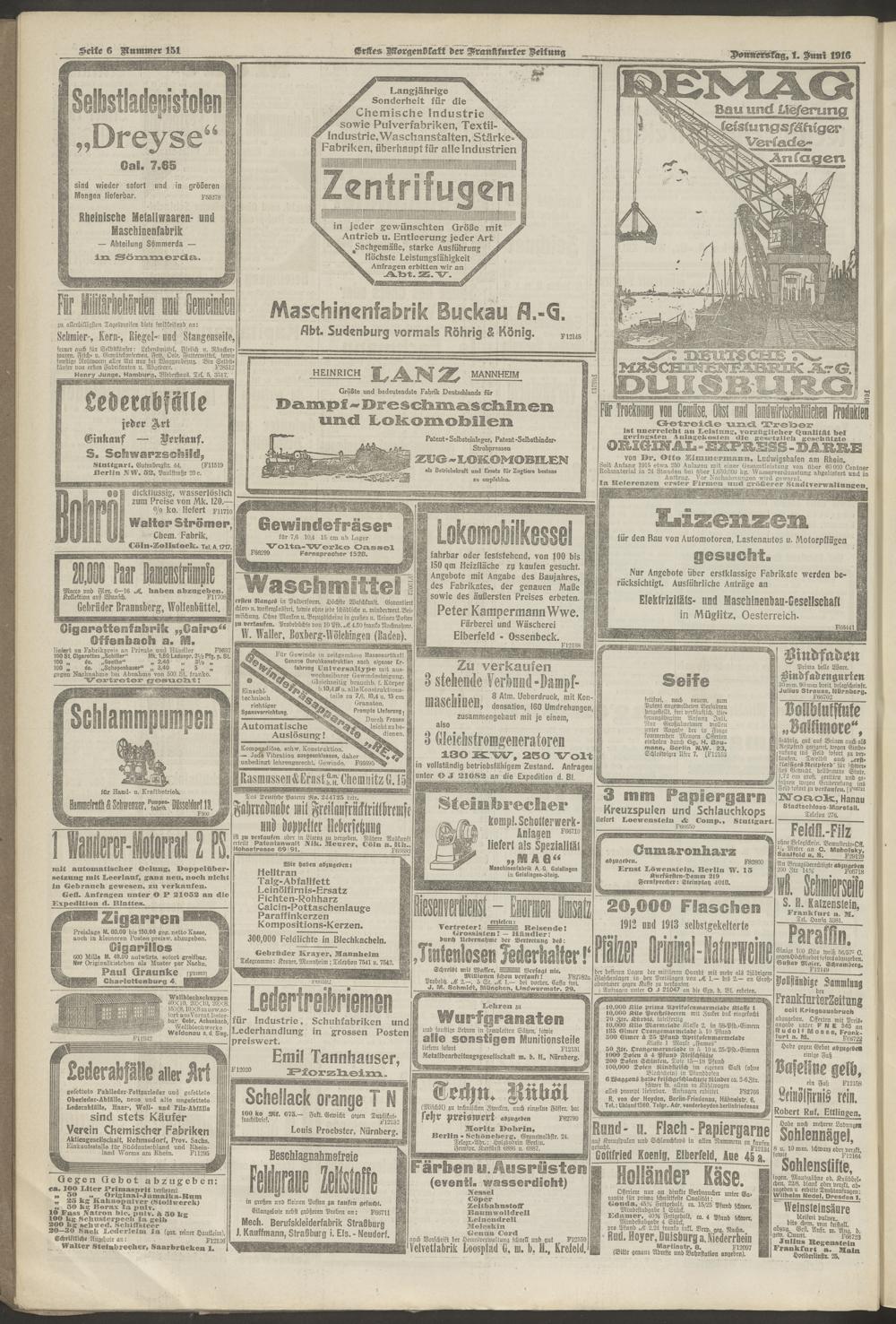 01.06.1916 = Nr. 151. Erstes Morgenblatt