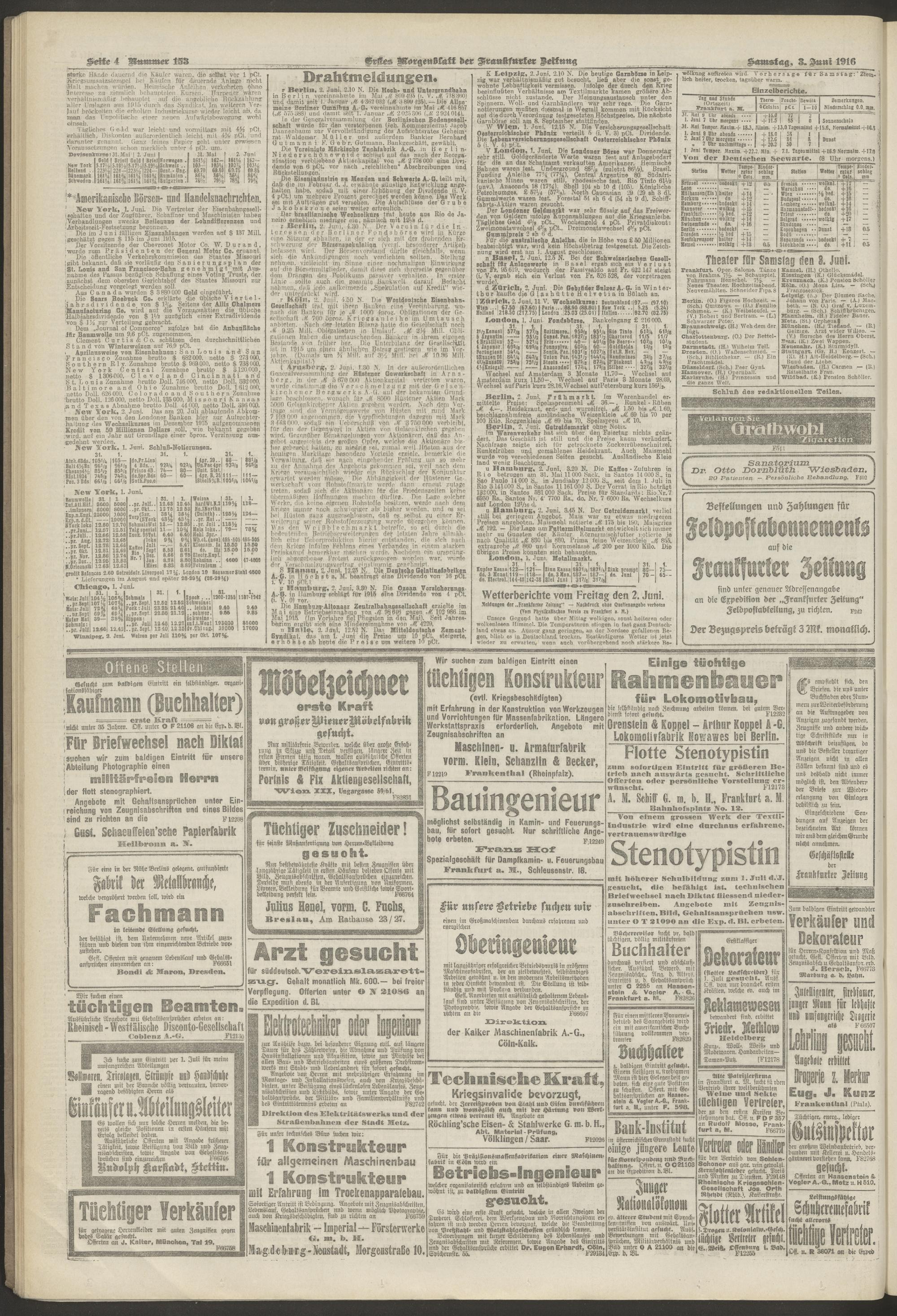 03.06.1916 = Nr. 153. Erstes Morgenblatt
