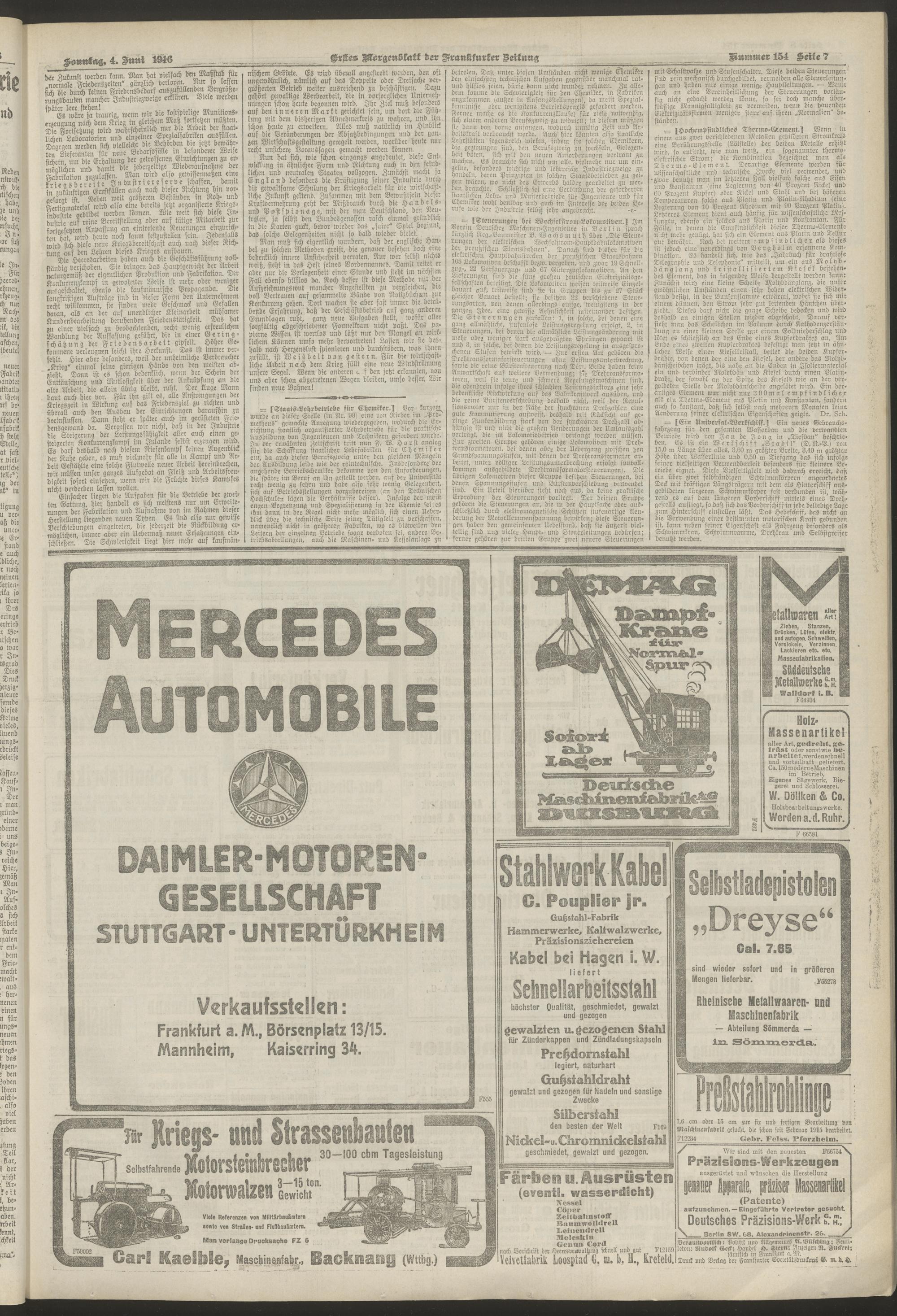 04.06.1916 = Nr. 154. Erstes Morgenblatt