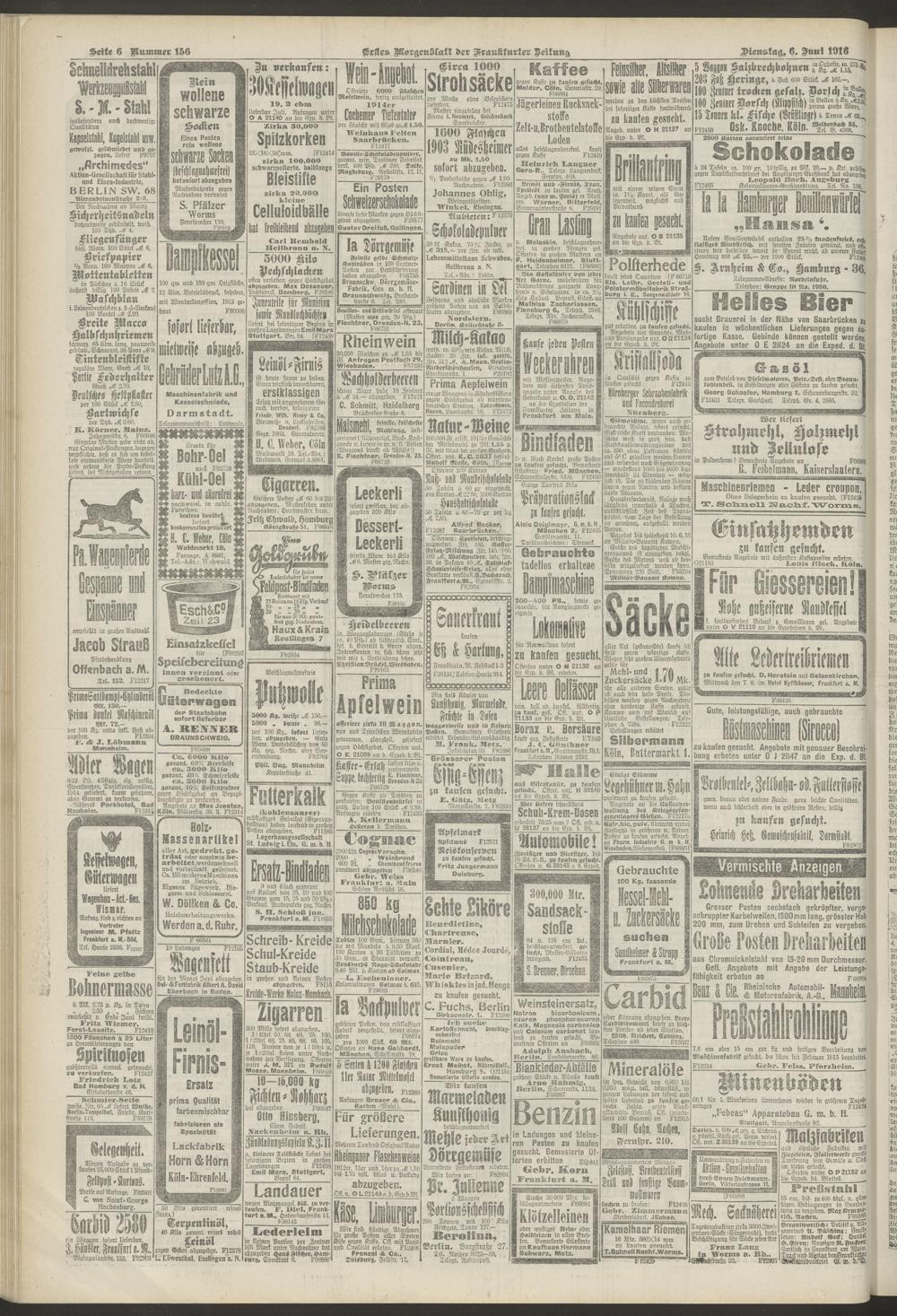 06.06.1916 = Nr. 156. Erstes Morgenblatt
