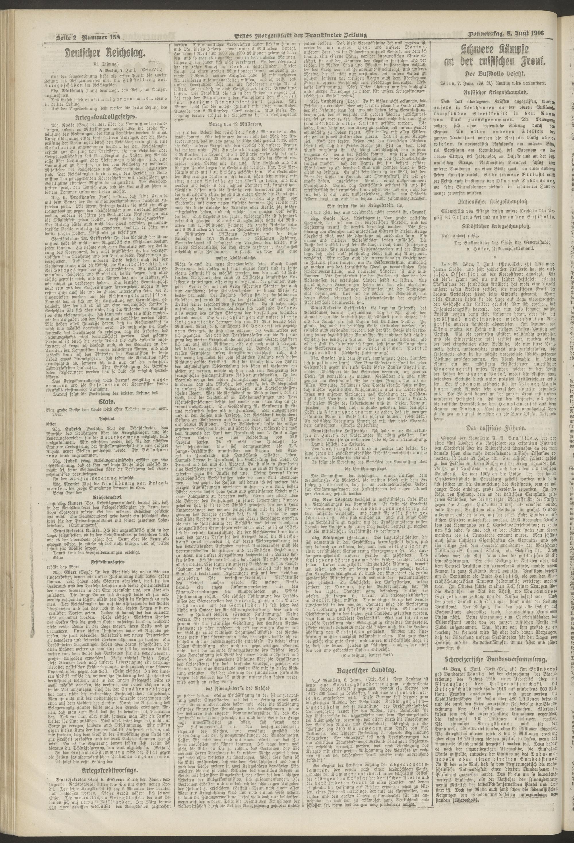 08.06.1916 = Nr. 158. Erstes Morgenblatt