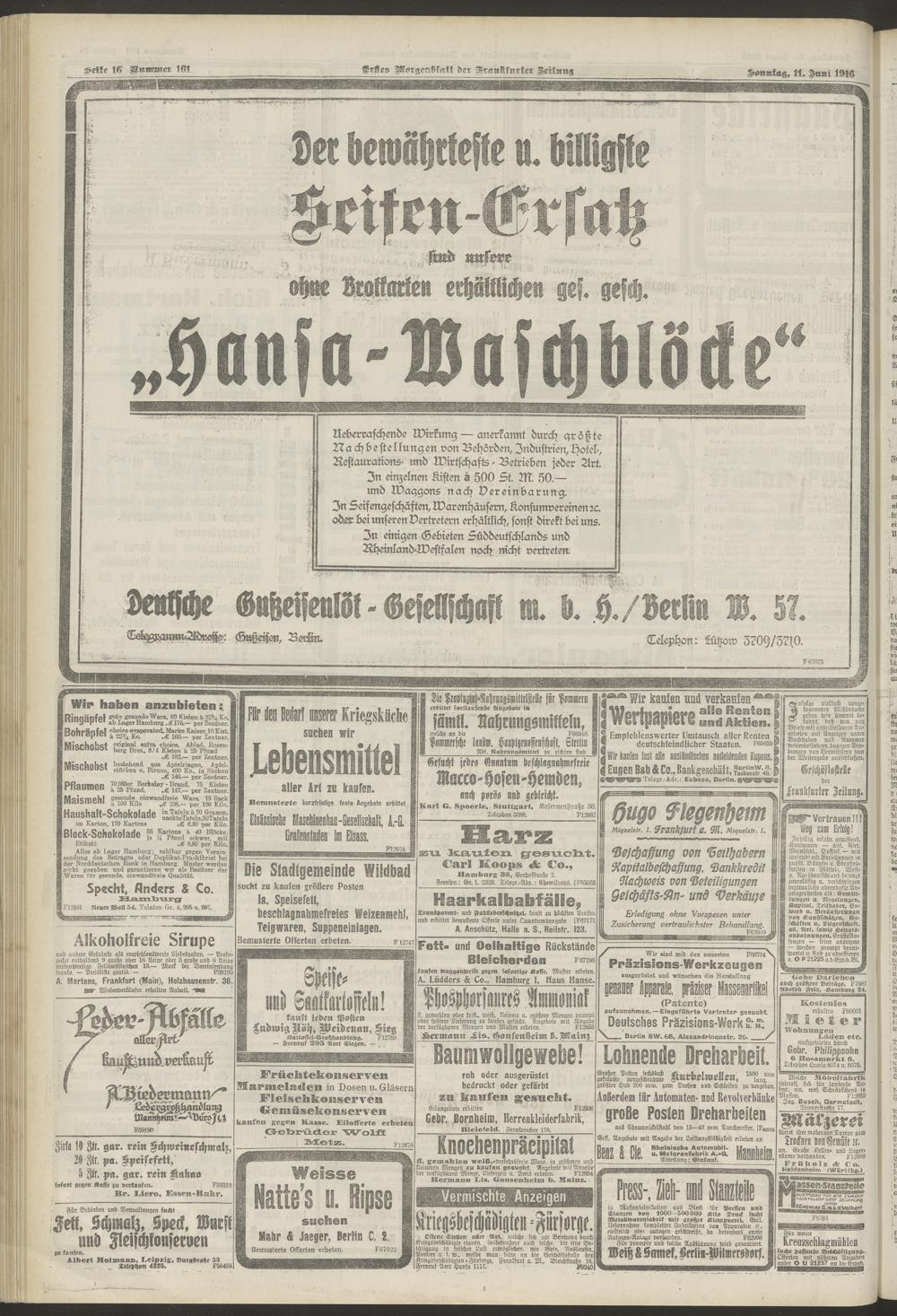 11.06.1916 = Nr. 161. Erstes Morgenblatt