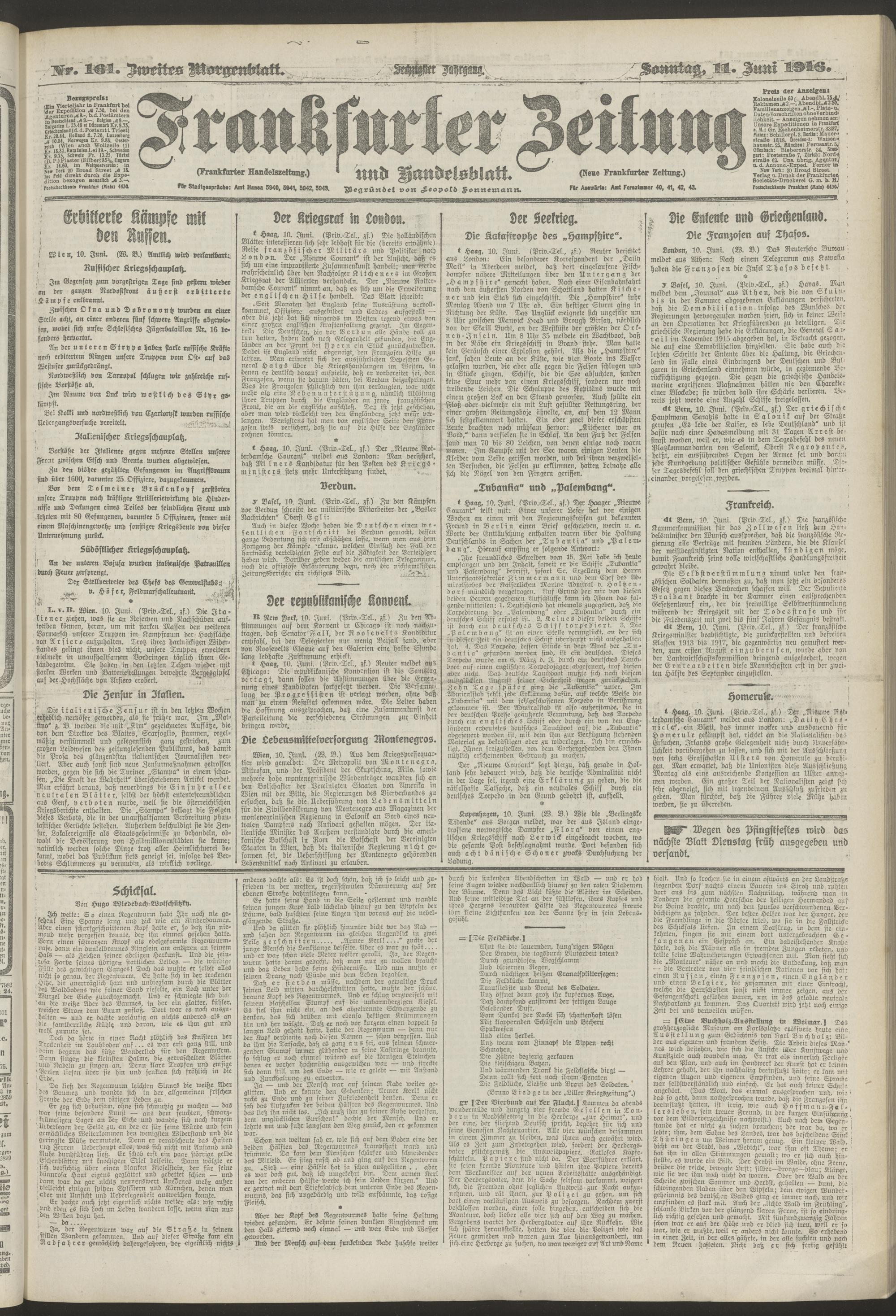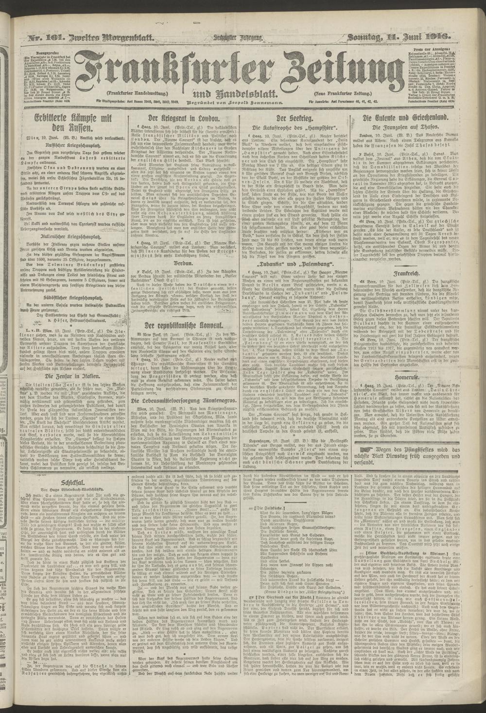 11.06.1916 = Nr. 161. Zweites Morgenblatt