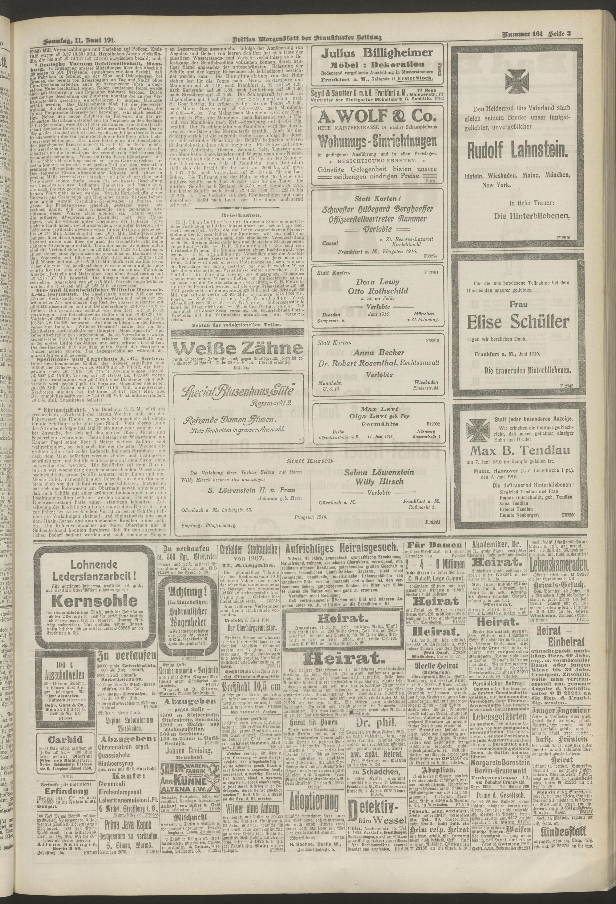 11.06.1916 = Nr. 161. Drittes Morgenblatt