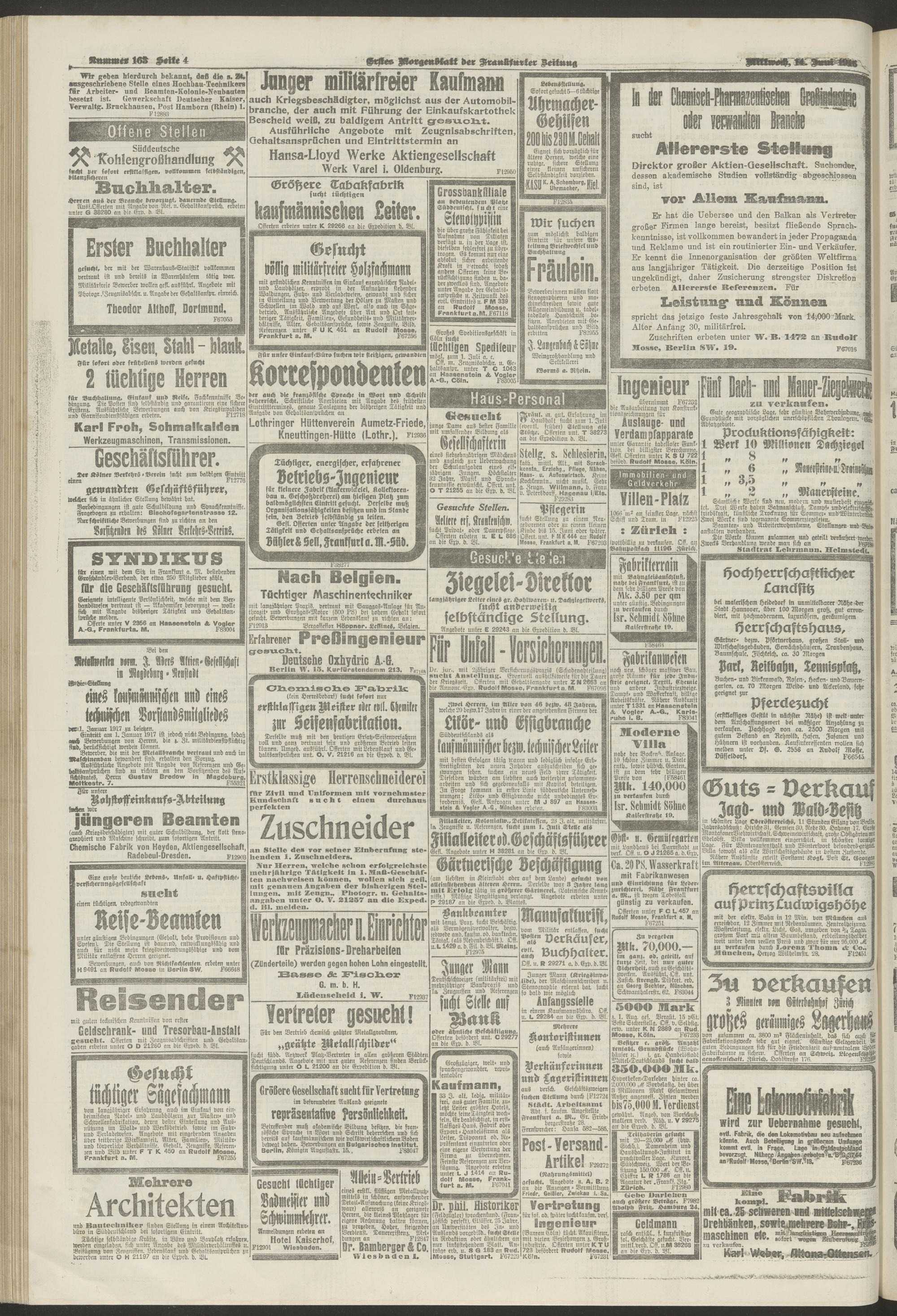 14.06.1916 = Nr. 163. Erstes Morgenblatt