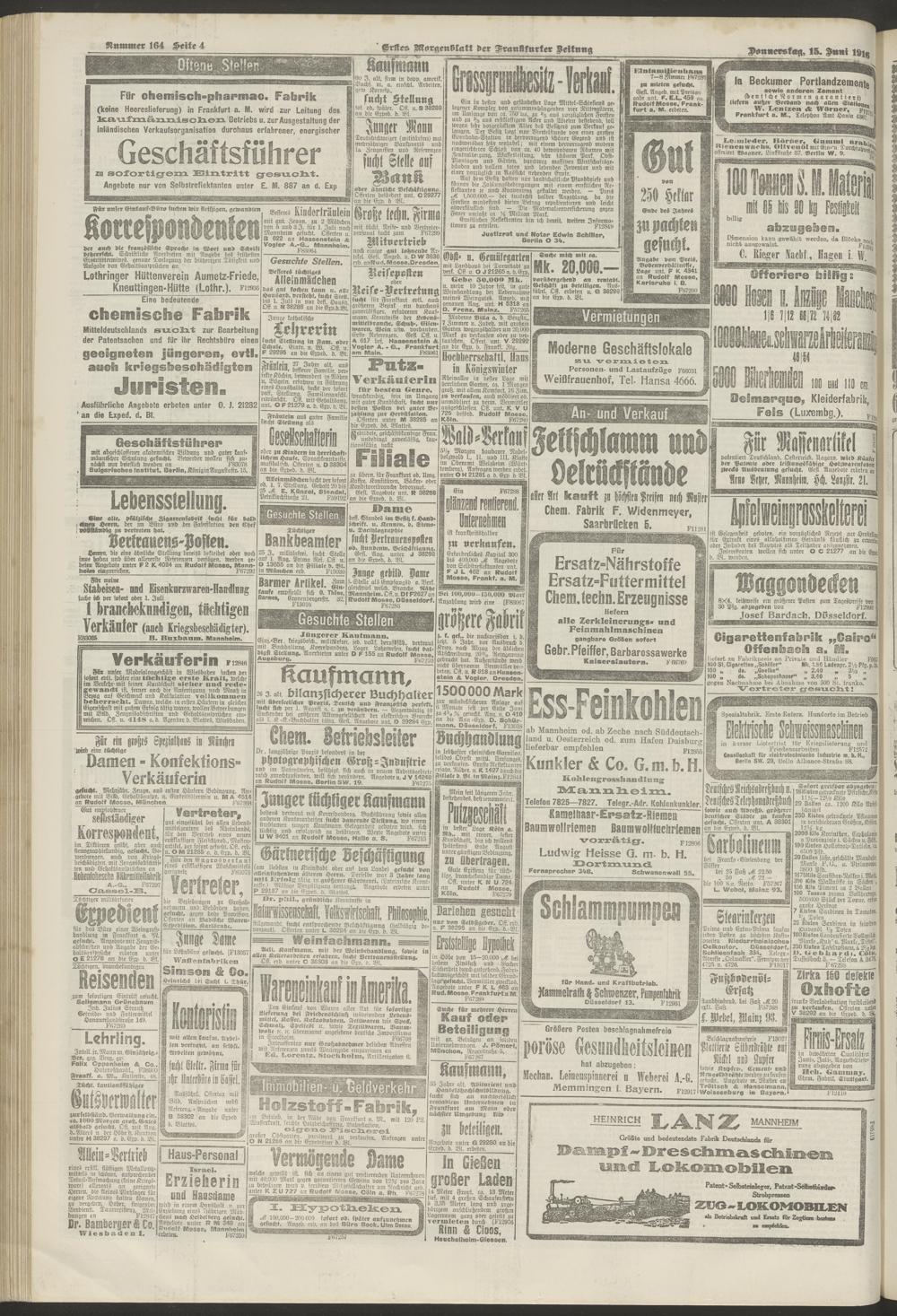 15.06.1916 = Nr. 164. Erstes Morgenblatt