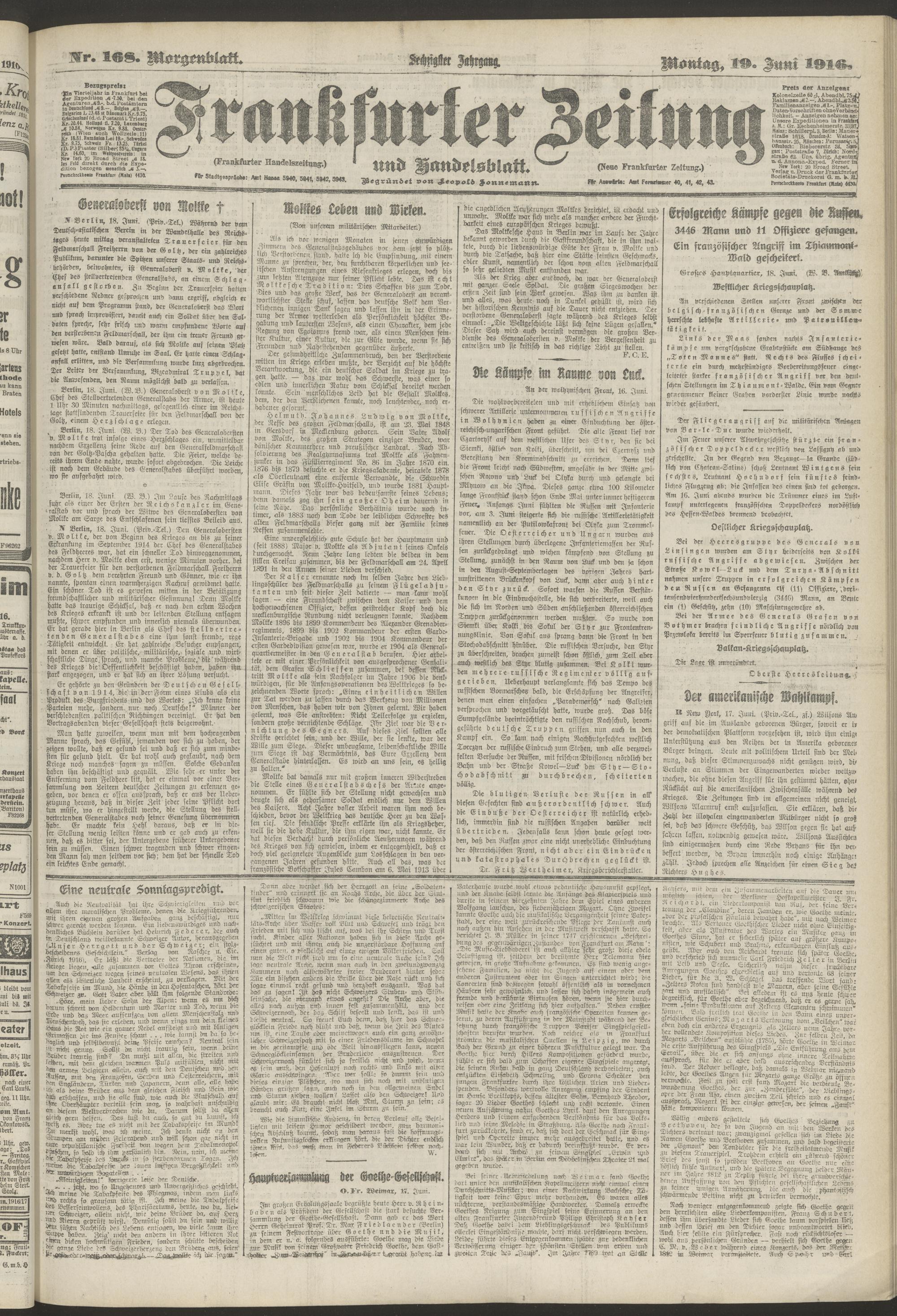 19.06.1916 = Nr. 168. Morgenblatt