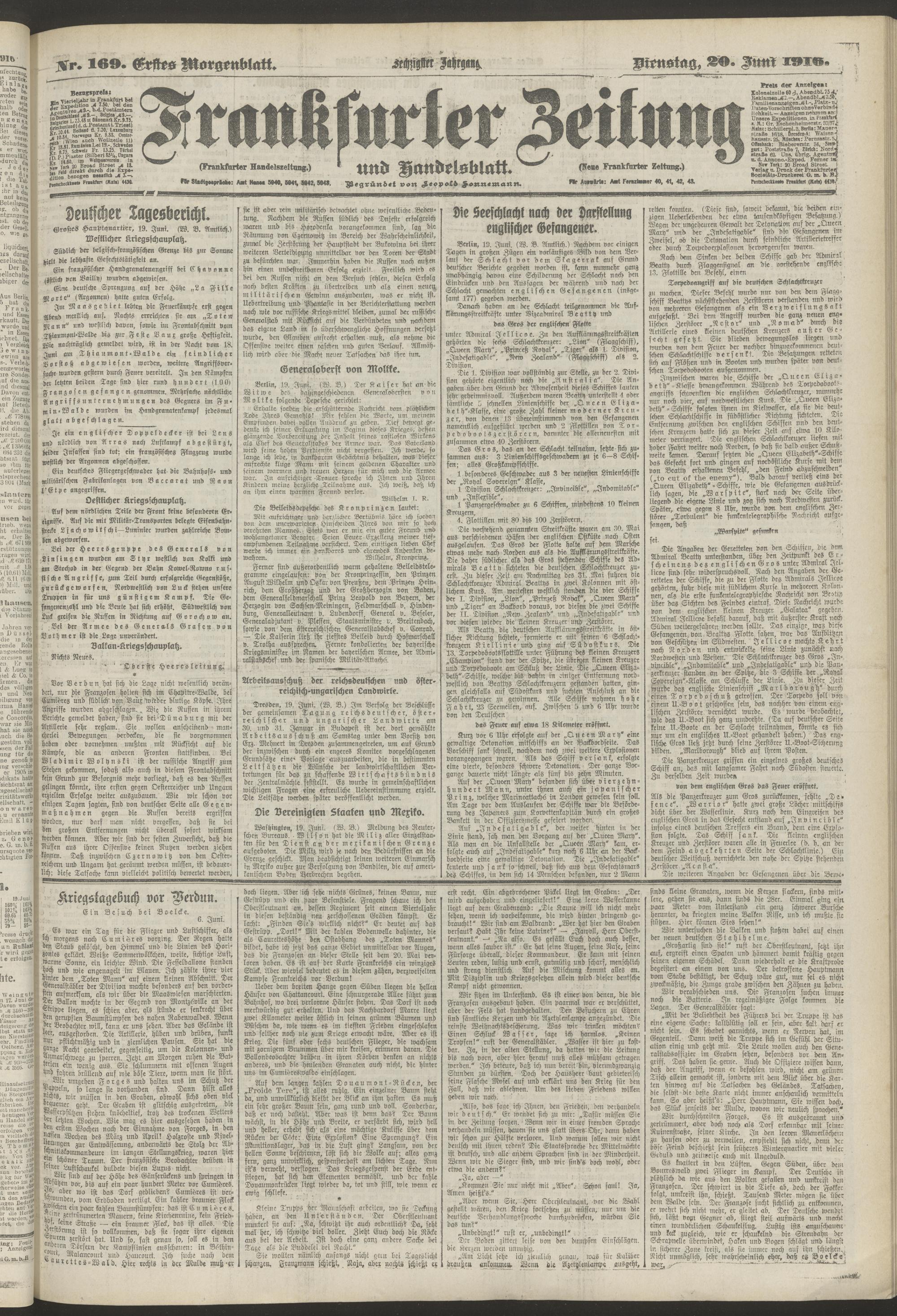 20.06.1916 = Nr. 169. Erstes Morgenblatt